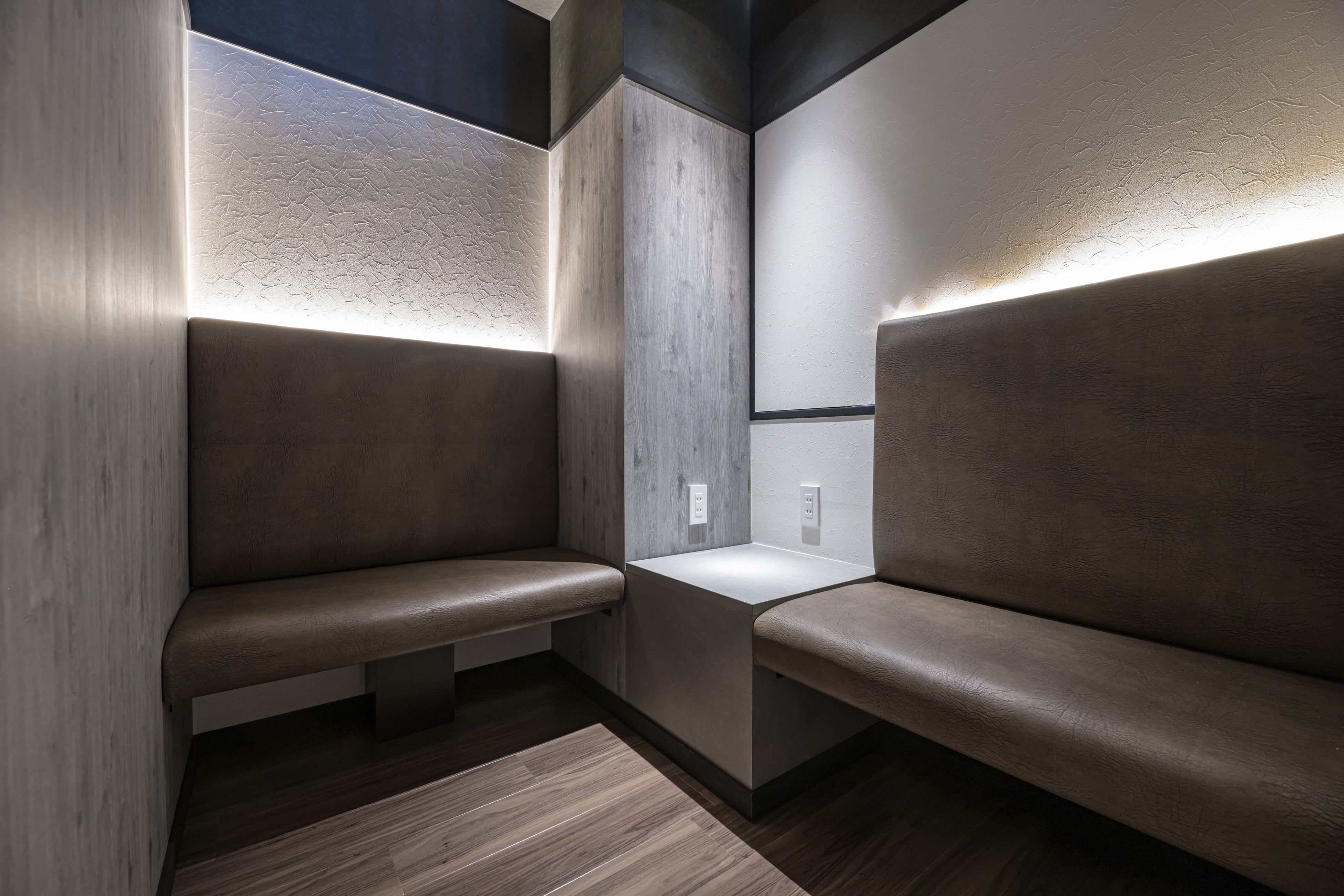 -室内のライトはご利用する女性のお客様がより綺麗に見えるよう、気にせず安心してご利用いただけるよう座席後方LEDライトによりほんのり明るく安心感あるお部屋の明るさに、スポットライトで顔の影を落とさないようテーブルのみに設置。よりお顔がはっきりと、綺麗に美しく見え、居心地のいい空間となっております。