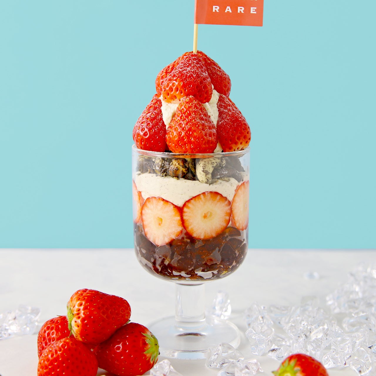 たっぷり苺の下には、ピスタチオアイス、自家製紅茶ゼリー、カカオグラノーラなどが重なって、いろんな味に出会えるぜいたくパフェです。