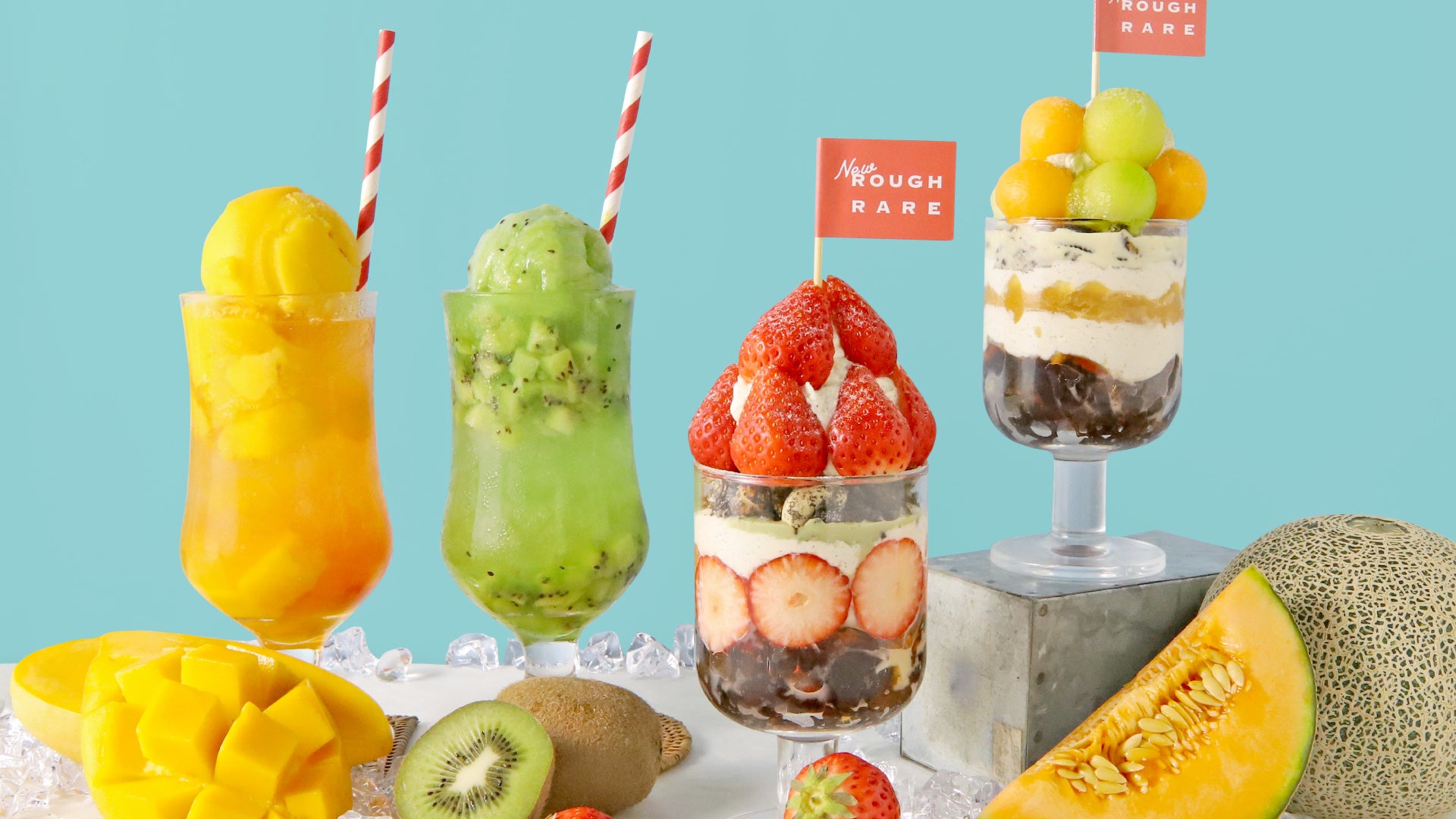フルーツたっぷりのパフェとフロートが2種類ずつ揃いました。