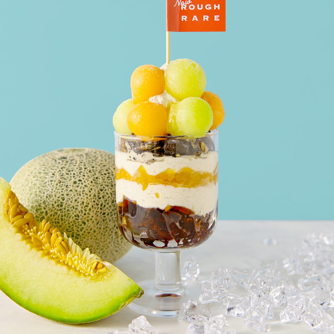 2種類のボール状の2種のメロンがかわいい、夏を感じるパフェ。