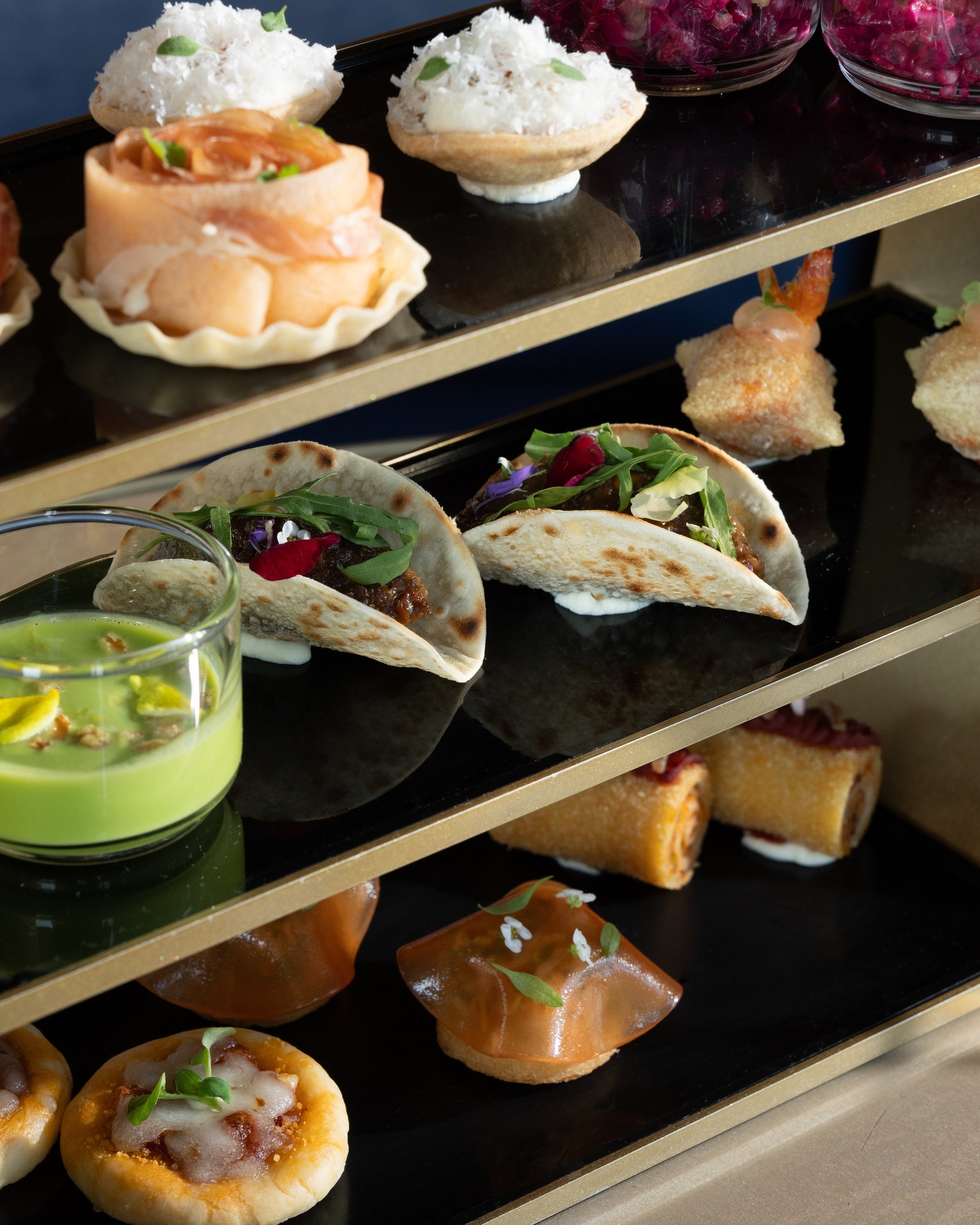 【セイボリー】グリーンピース アランチーノ / 揚げパン モルタデッラ / メロンスープ / サーモンロール / ホットサンド 【ドリンク】厳選されたアルマーニ / ドルチ ティー、コーヒー等
