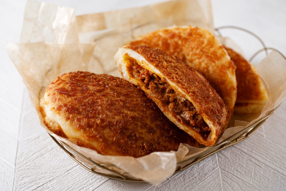 ワンハンドで持ちやすく、気軽に楽しむことができるスパイス香るやみつきカレーパンです!紀ノ国屋オリジナルレシピのキーマカレーを包み焼き揚げています。