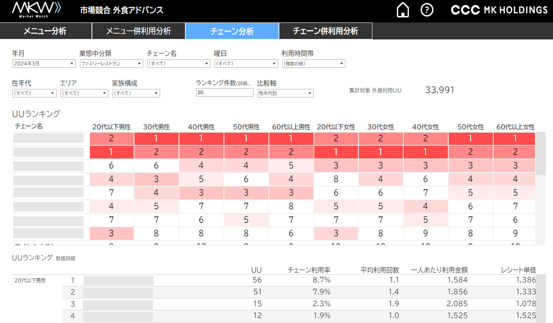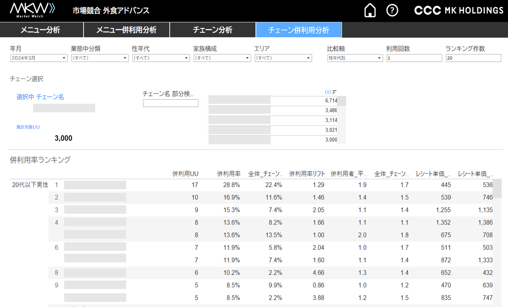 ③チェーン分析:チェーンの利用率ランキング