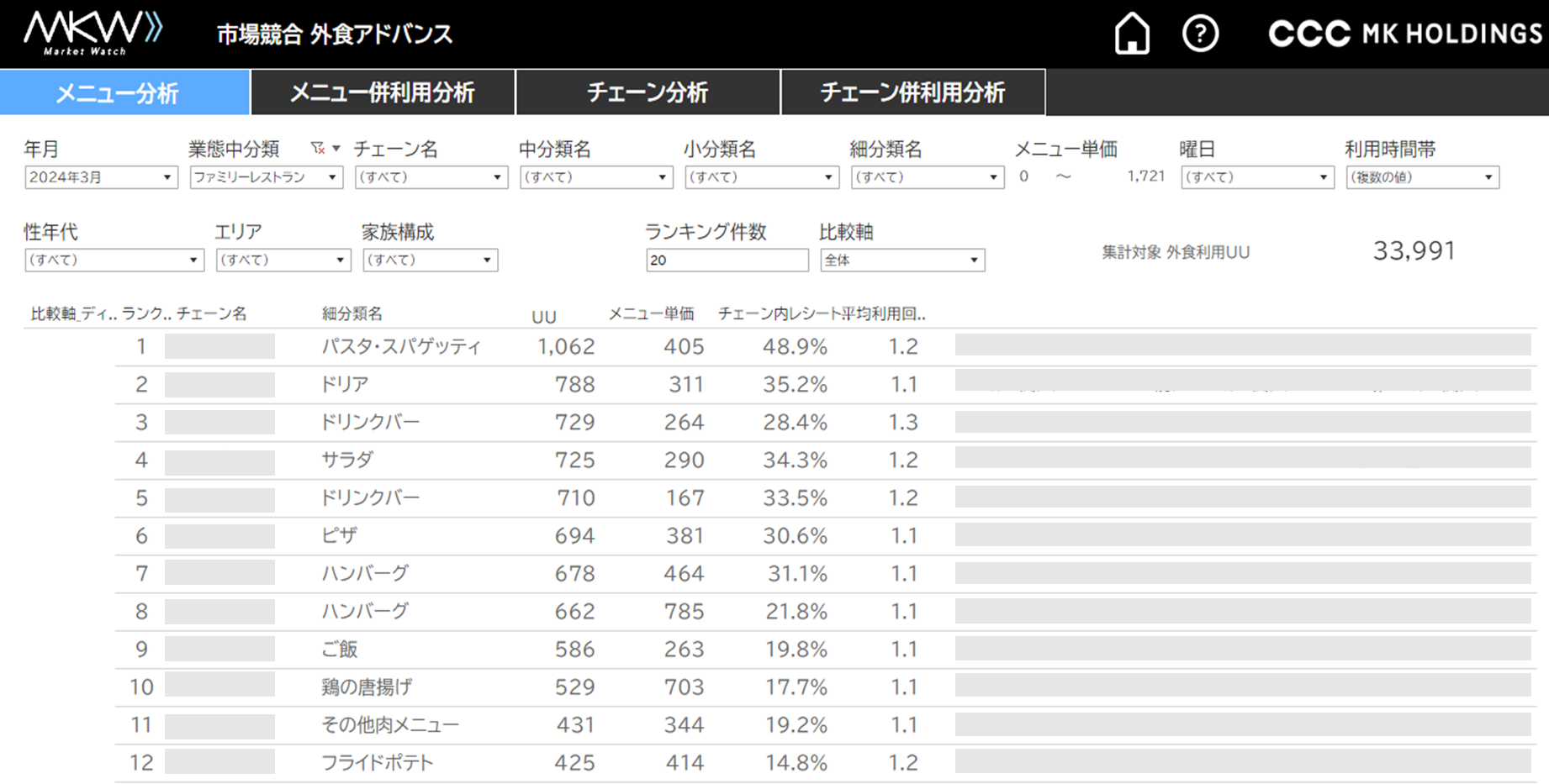 ①メニュー分析:チェーン横断のメニューランキング