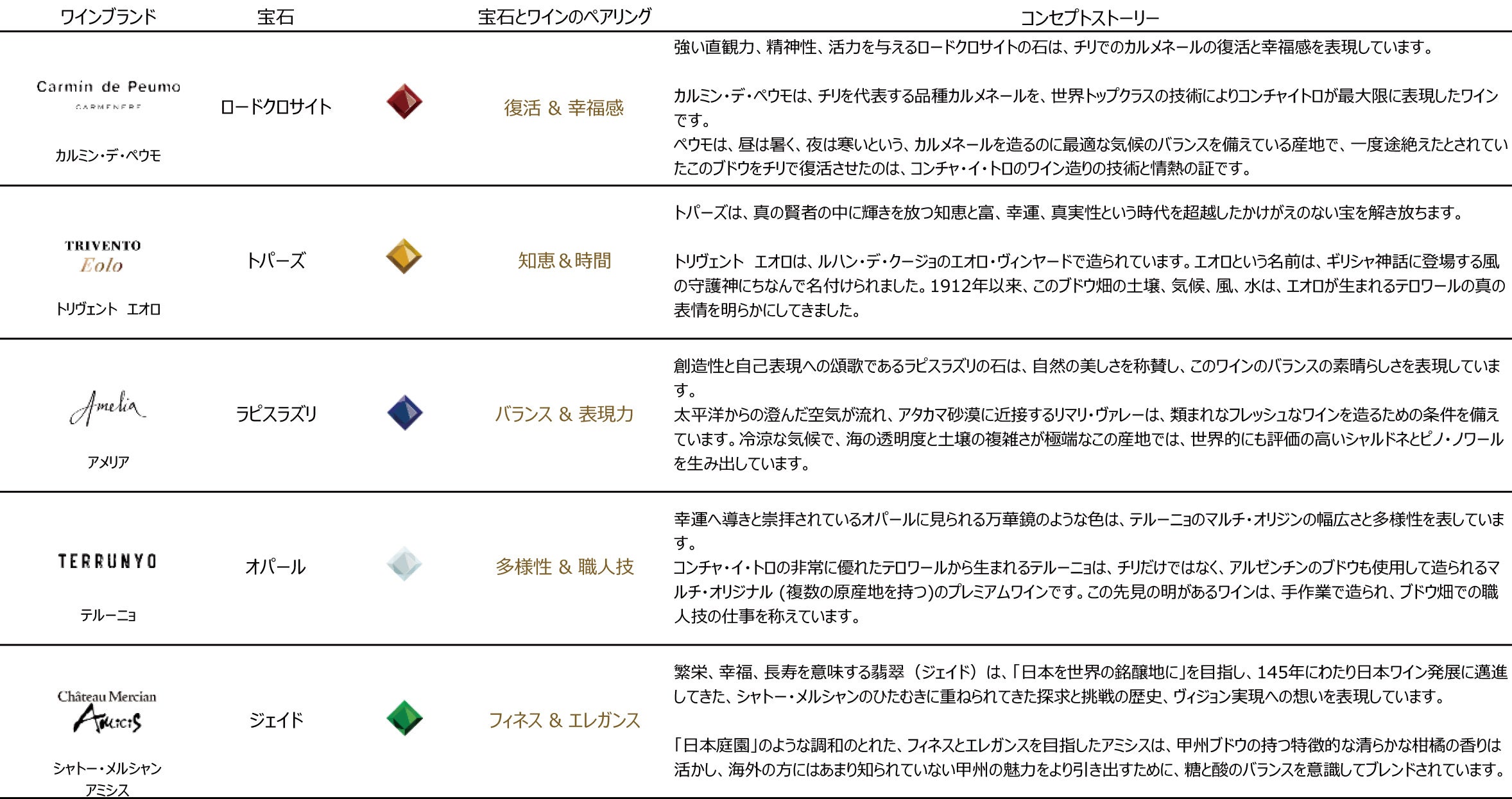 各ワインブランドと宝石とのペアリングは下記の通りです。