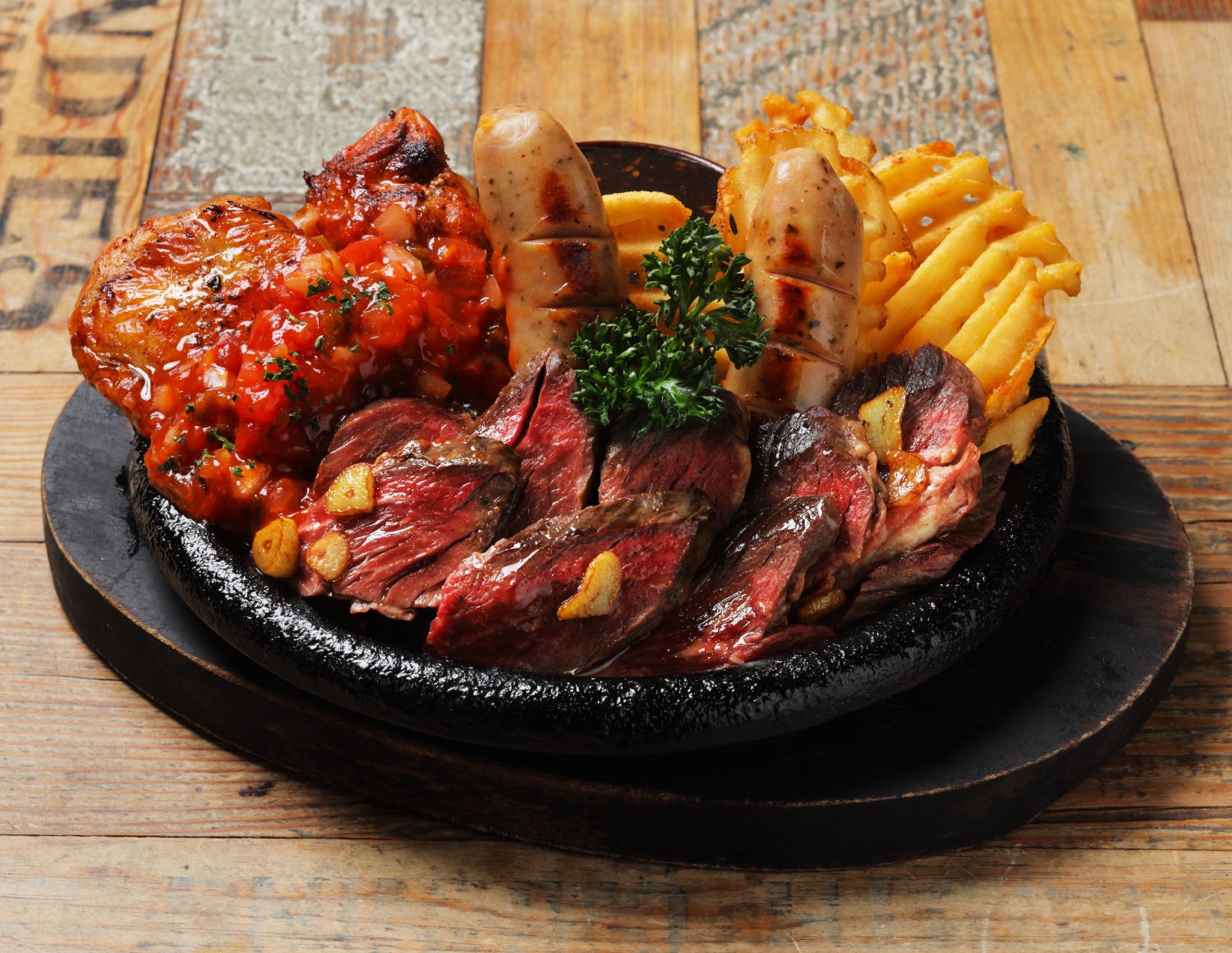 熱々の鉄板で提供する、食べ応え十分な3種のお肉が組み合わさったハワイアンBBQコンボ。ガーリックと胡椒で香ばしく焼き上げたガーリックペッパーリブフィンガー、さっぱりトマトサルサで食べる特製シーズニングに漬け込んだジャークチキン、一度ボイルした後に焼き上げてジューシーな味わいを引き出した粗挽きハーブソーセージをラインアップしました。