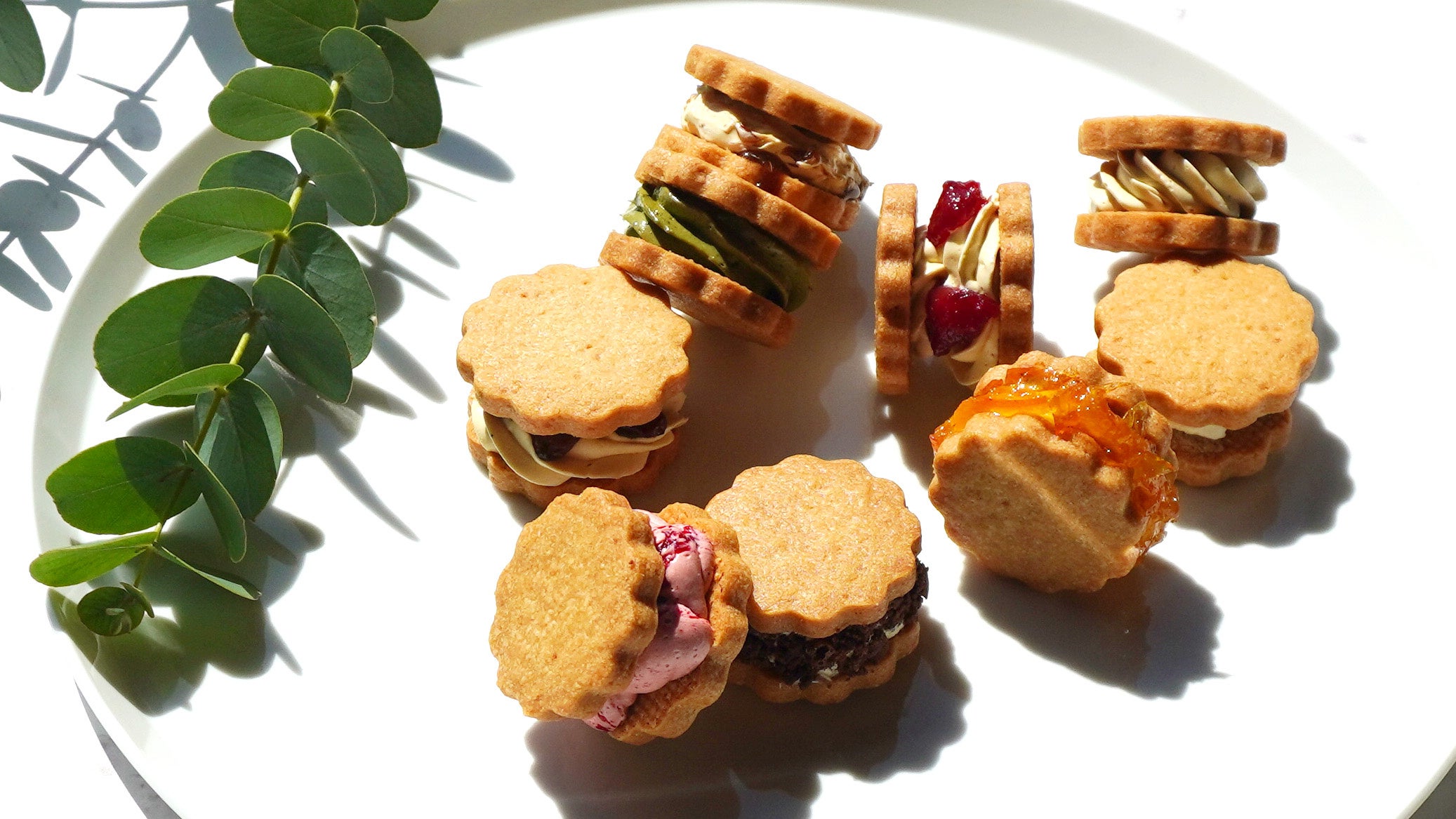 小麦が身体に負担をかけるから、という理由も一つにはありますが、さくほろっとしたグルテンフリーサブレはそれ自体のおいしさももちろん、軽やかでなめらかなクリームの味わいを存分に活かすことができる存在。バターサンド全体としての美味しさを考えた時に、グルテンフリーサブレでいこうと決めました。