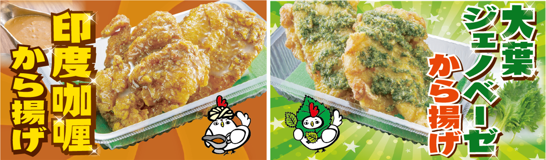 ■商 品 :「印度咖喱から揚げ」、「大葉ジェノベーゼから揚げ」