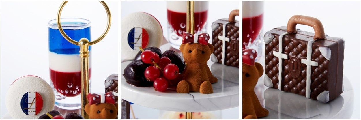 さらに、「LOUANGE TOKYO」で人気のテディベア“ヌーミー”のガールフレンド“エイミー”がアフタヌーンティーに初登場。今夏、オリンピックも開催されるフランス パリの街をトランクケース片手にエイミーが美食探訪しているような、ボリュームたっぷりのアフタヌーンティーです。