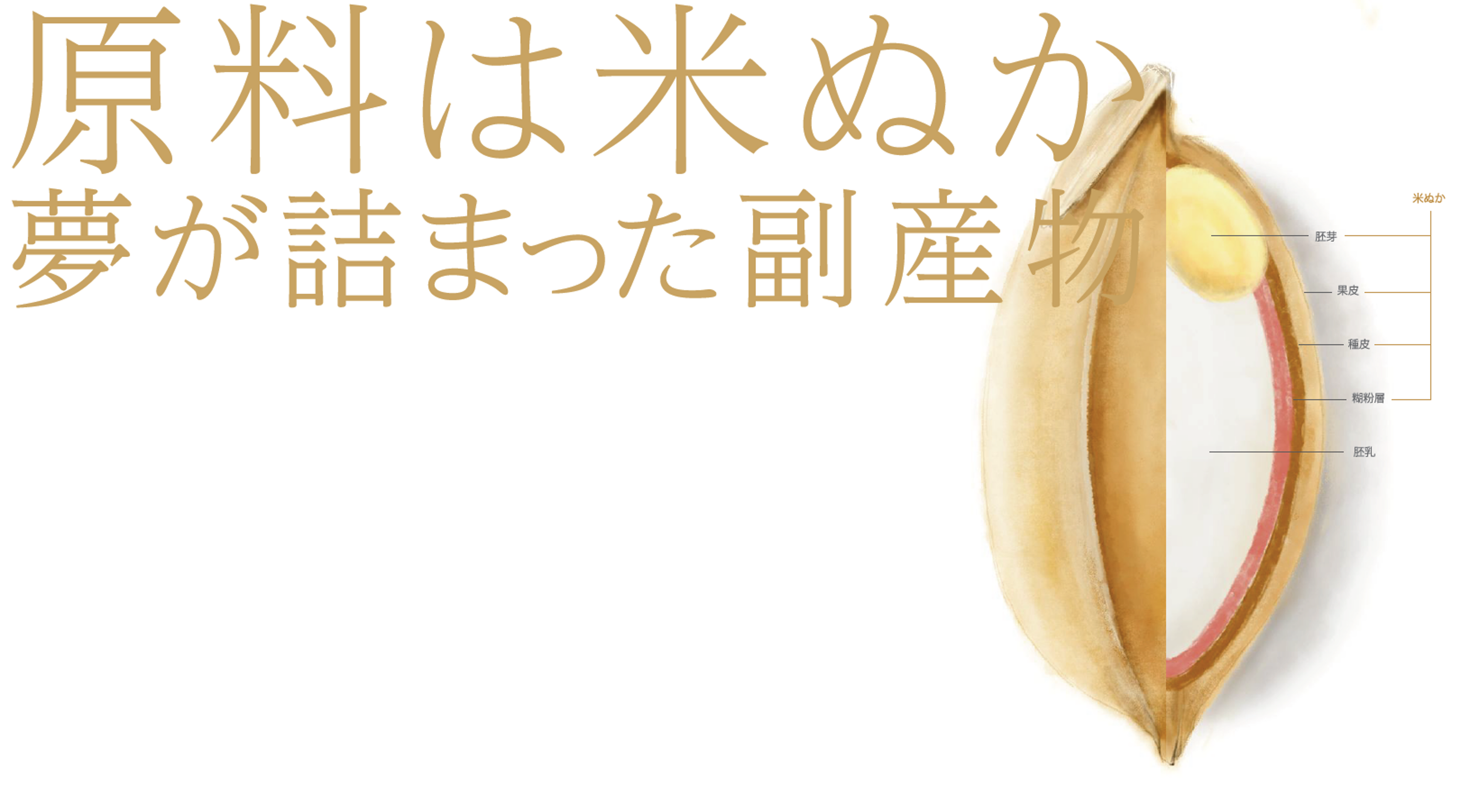 築野グループ株式会社は長年、こめ油の原料である米ぬかの成分に着目し、研究を進めてまいりました。精米時に発生する副産物である米ぬかの成分を抽出することで、こめ油だけでなく食品、化学、医療、化粧品等の幅広い分野において高度利用され、米ぬかを100%有効利用しております。今後も国内の米ぬかを活用することで地球・生産者・消費者の良い循環の実現を目指していきたいと考えています。