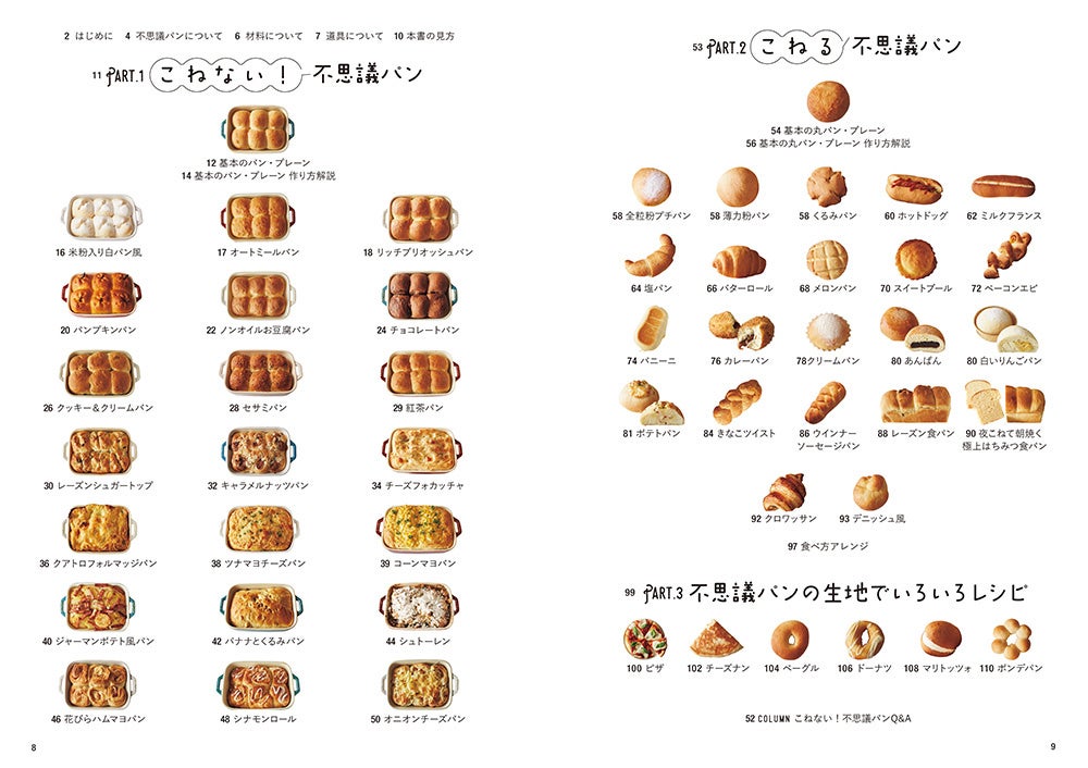 そんな「こねない不思議パン」は22レシピ、見た目も味も本格的なのに、なぜか30分で焼ける「こねる不思議パン」は29レシピ紹介。