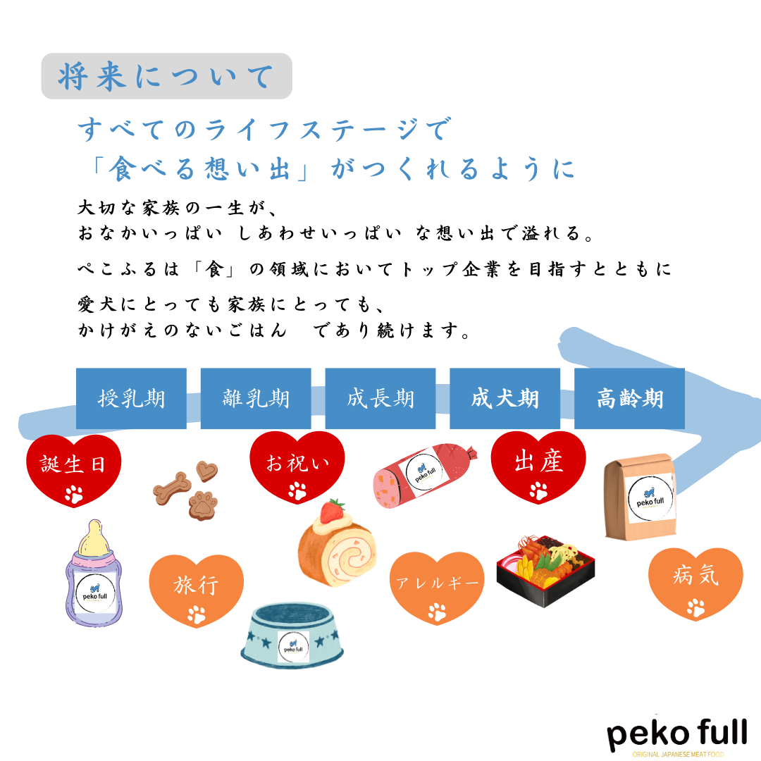 事業内容:フレッシュペットフード「pekofull」の販売 https://pekofull.myshopify.com/