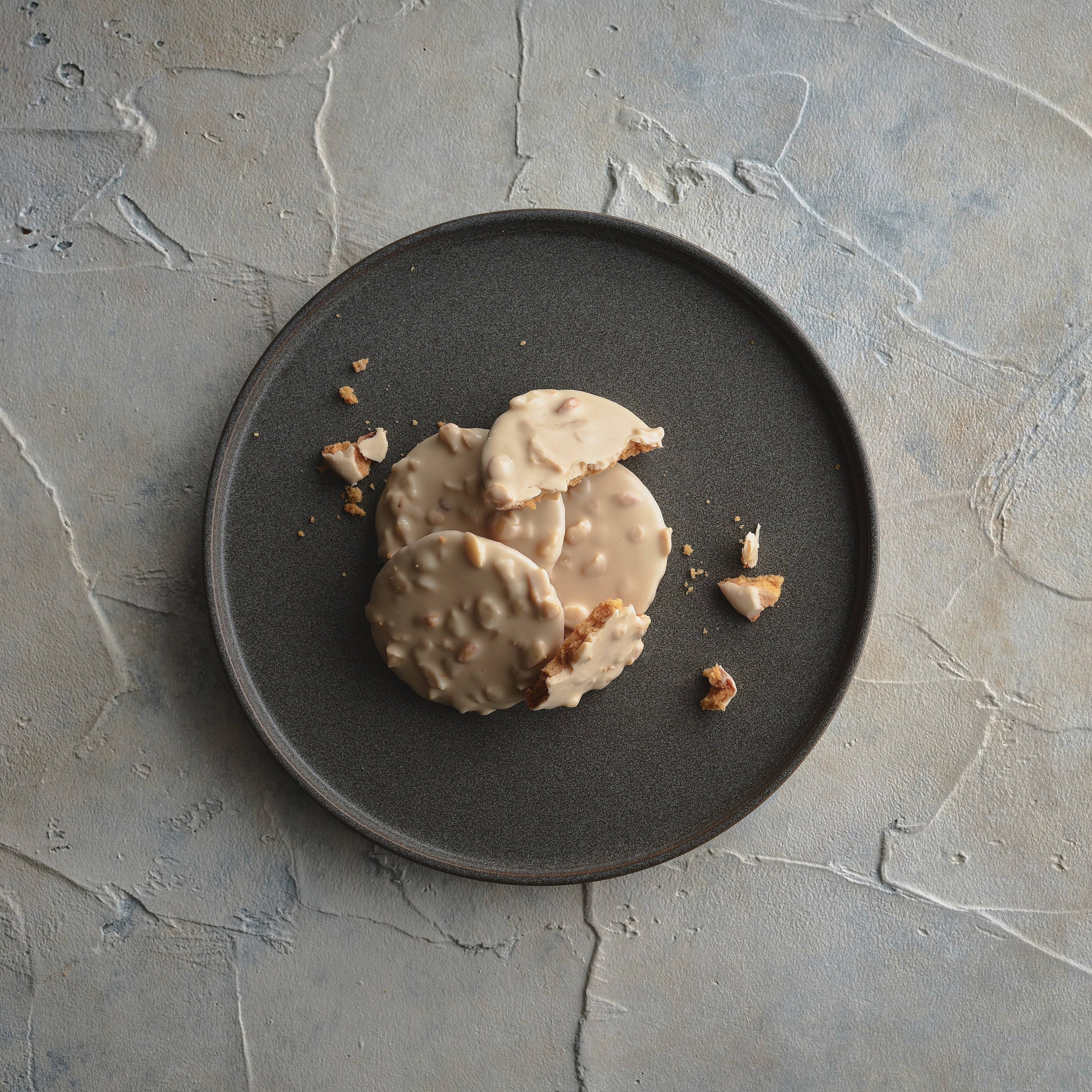 贅沢に練り込まれたサブレをホワイトチョコでコーティング。