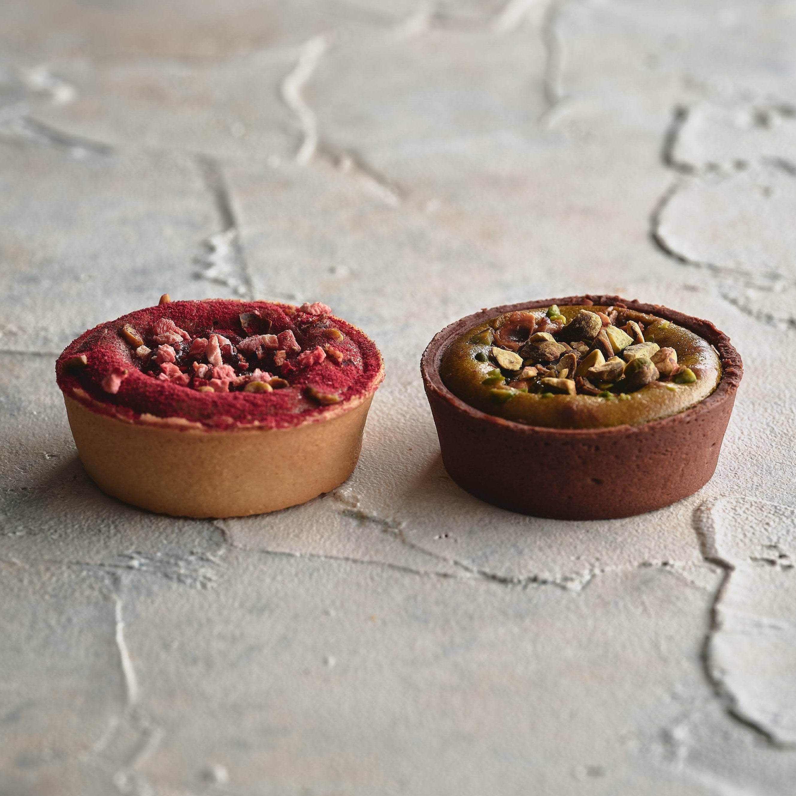 クリームの中にザクザクのキャラメルクランチ、キュイショコラには香ばしいピスタチオを散りばめて。