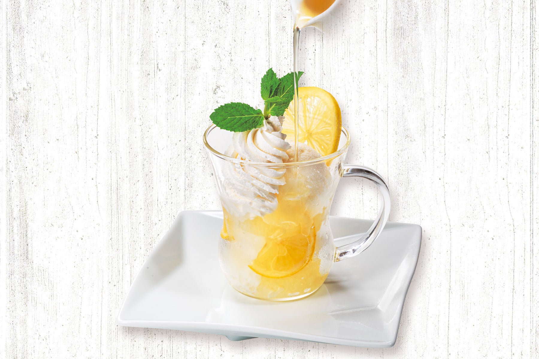 サクサク氷とハニーれもんシロップによる自然な美味しさだけでなく、はちみつレモンの甘酸っぱい風味、北海道ミルクジェラートとホイップクリームのコク深さが口の中で広がります。別添えのハニーれもんシロップを全体にかけてお召し上がりください。