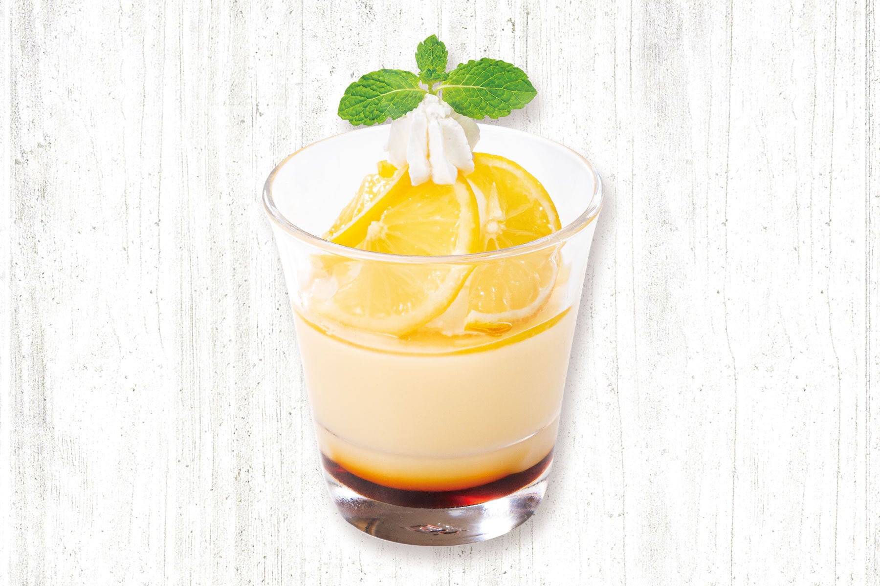 くちどけなめらかな自家製プリンにホイップクリームとはちみつレモンを盛り付けました。プリンとホイップの間に「はちみつレモン+ハニーれもんシロップ」の層が絶妙なアクセントになっており、プリンのとろける甘さとレモンの風味が口の中で一緒に広がり、爽やかさを引き立てます。なめらかなのどごしで夏のはじまりにぴったりなデザートです。