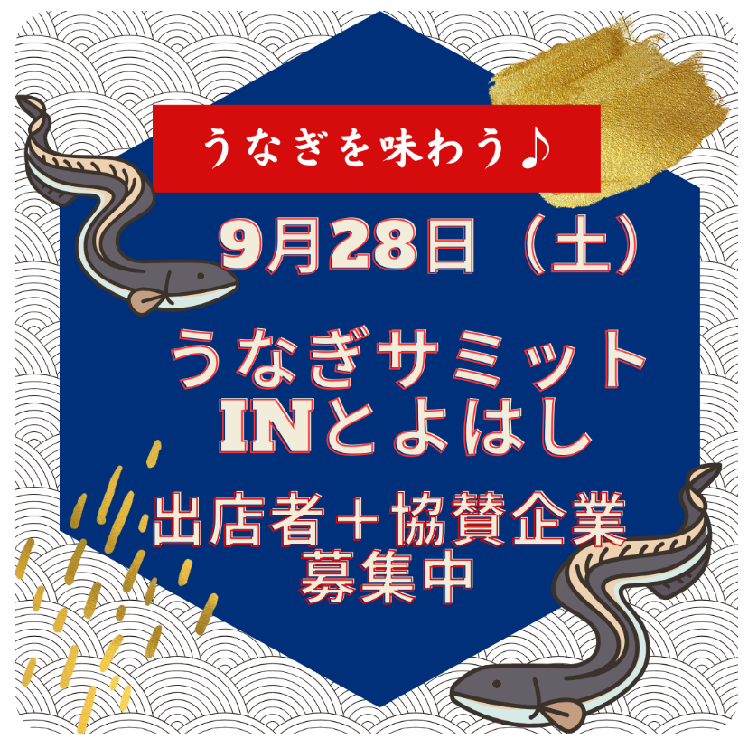 初開催となるうなぎサミットinとよはしに出店しPRを行いたい店舗や企業様、また当該事業に協賛いただける方々を募集しております。