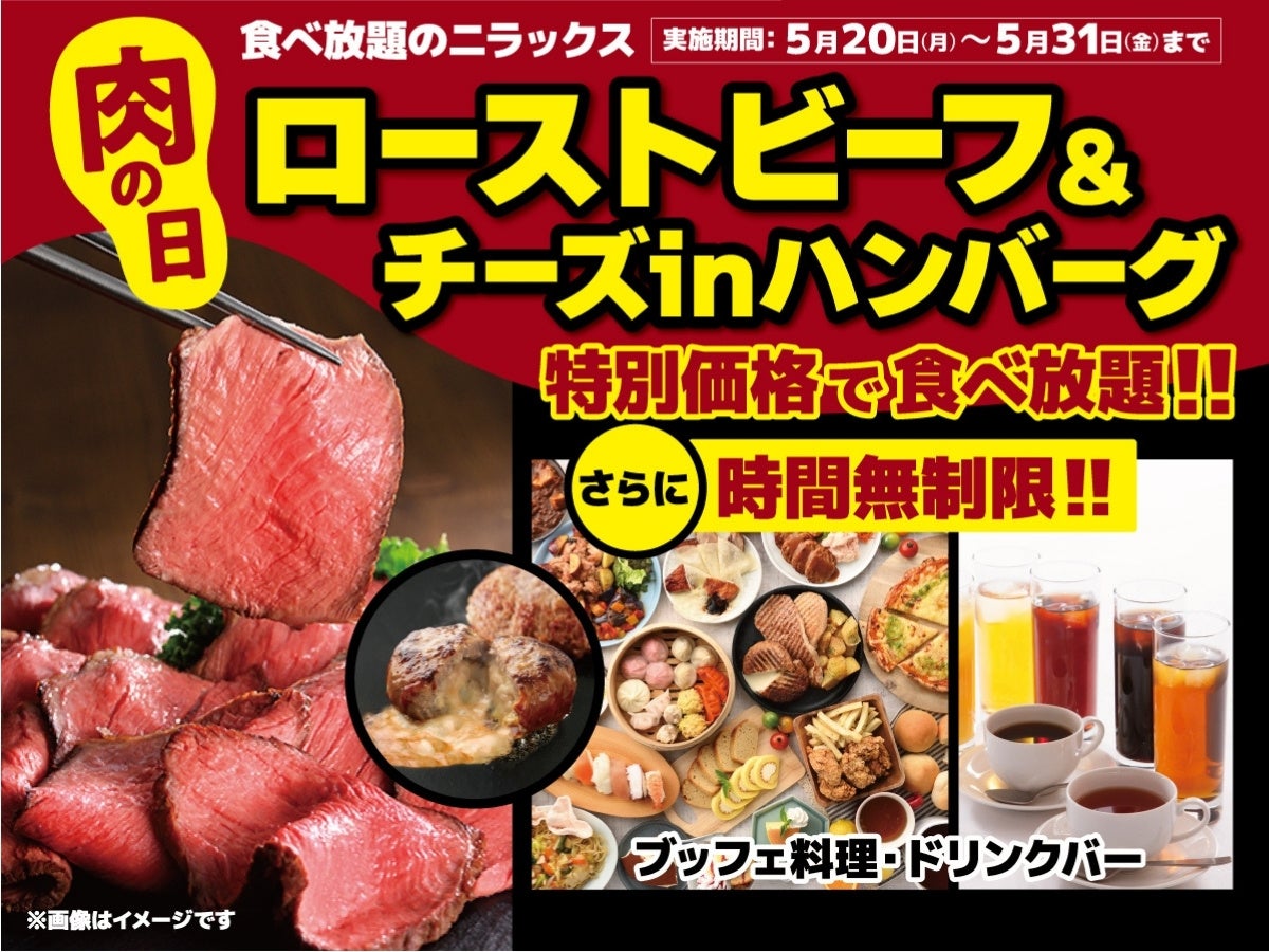 この度、2024年5月20(月)~ 2024年5月31日(金)までのWEB平日ディナー予約期間限定!肉メニューが満載の『プレミアムコース』が『肉(ニク)の日』にちなんで、290円お得にご利用できる『肉の日』特別企画を開催!