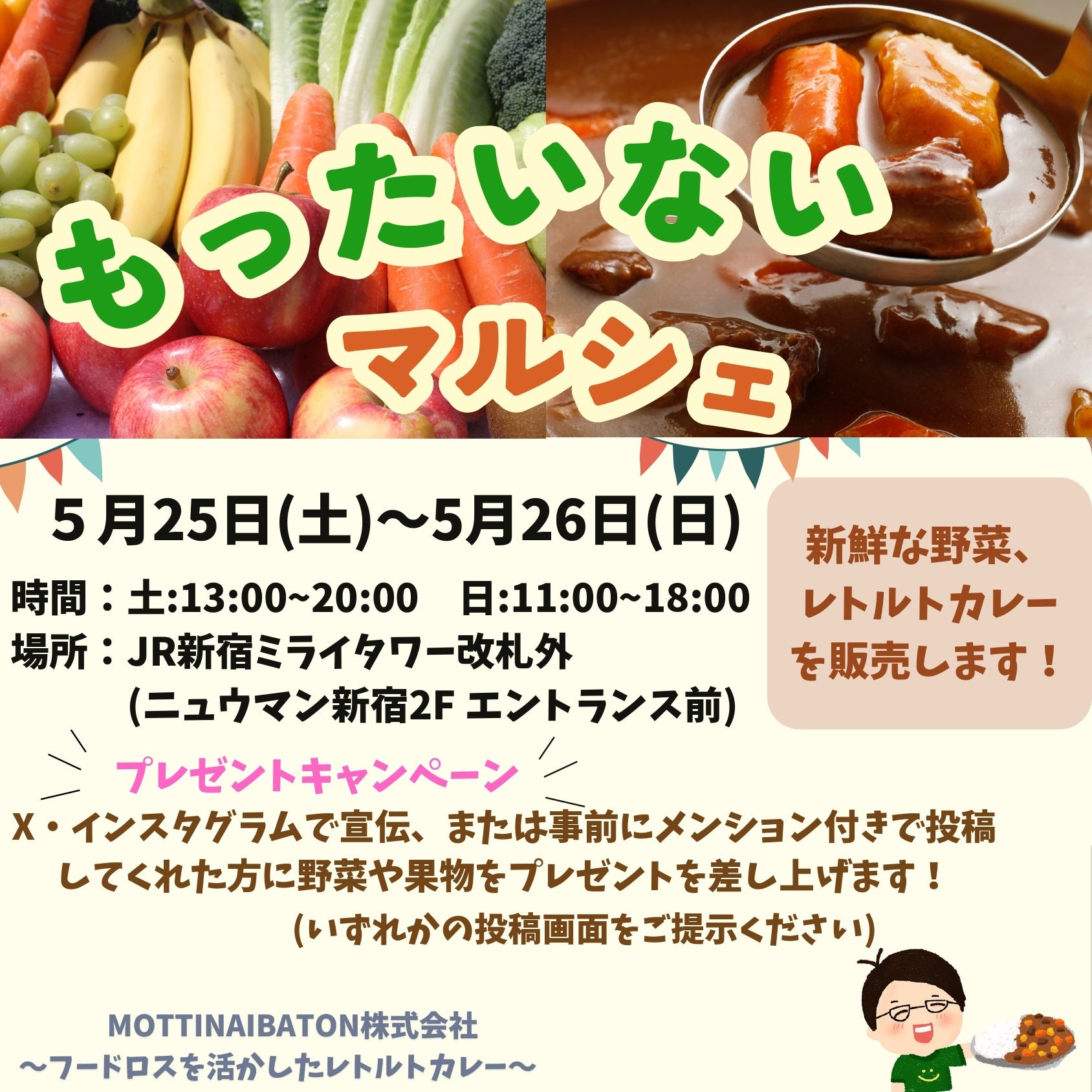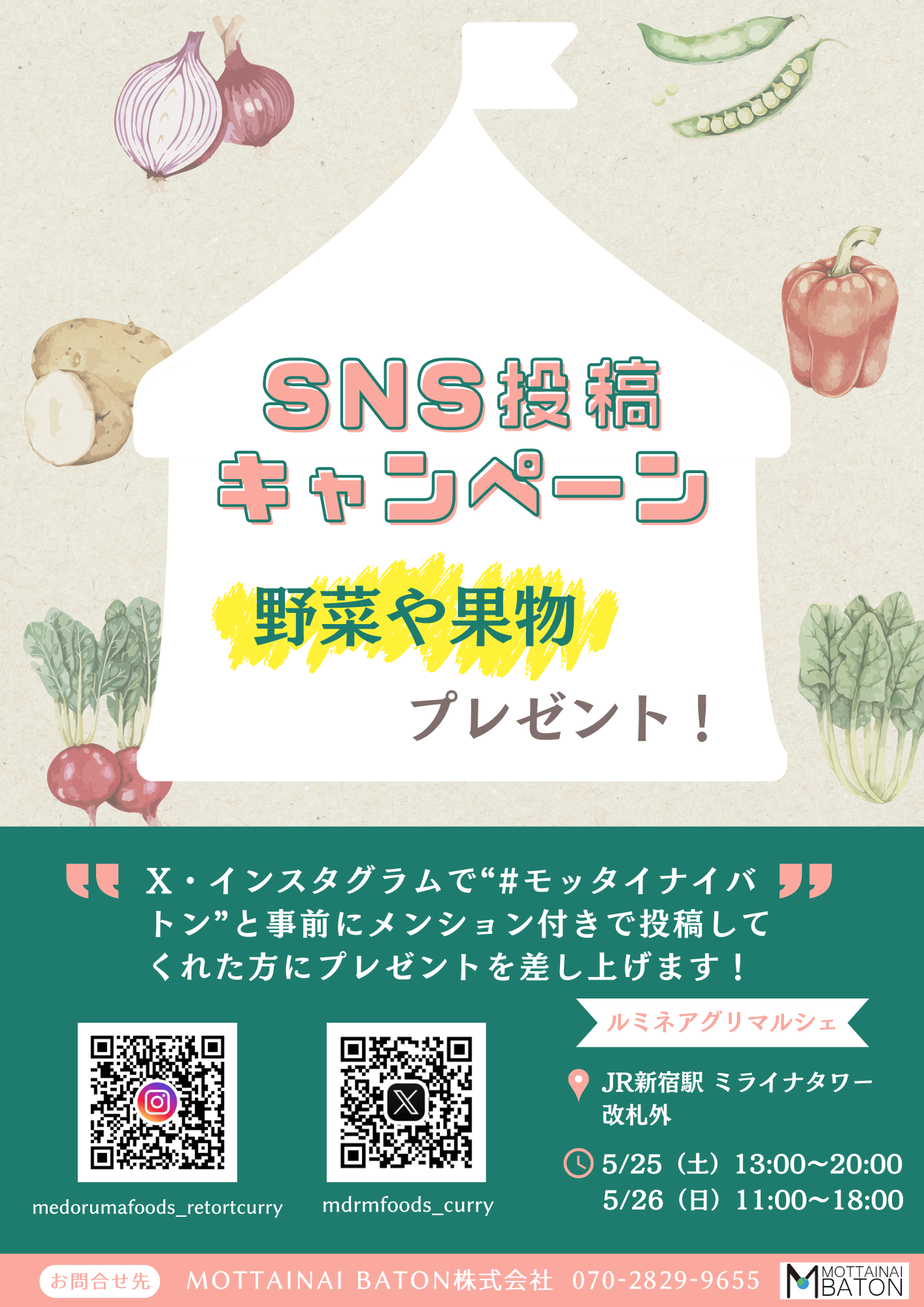 ハッシュタグキャンペーンとして、#モッタイナイバトンとメンションしてSNS(X (旧Twitter)Instagram)で投稿してくれた方でイベントに来場した方には野菜や果物をプレゼントします。※数には限りがあります