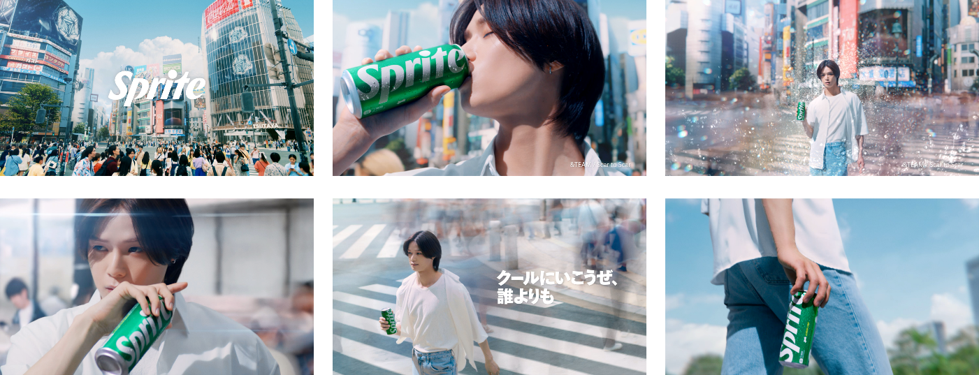 この夏「スプライト」が届けたい、クール&スタイリッシュさを体現する新アンバサダーとして、若者たちから絶大な人気を誇る&TEAMのKさん、JOさん、MAKIさんを迎えました。5月27日(月)からは、Kさんが出演するWEB CM『クールに行こうぜ、誰よりも』篇を「コカ・コーラ」公式YouTubeにて公開します。「スプライト」を飲むことで、暑い季節にもクールでいられる様子を表現しており、Kさんの「クールにいこうぜ、誰よりも」というセリフと共に、自信に満ち溢れた表情にも注目です。