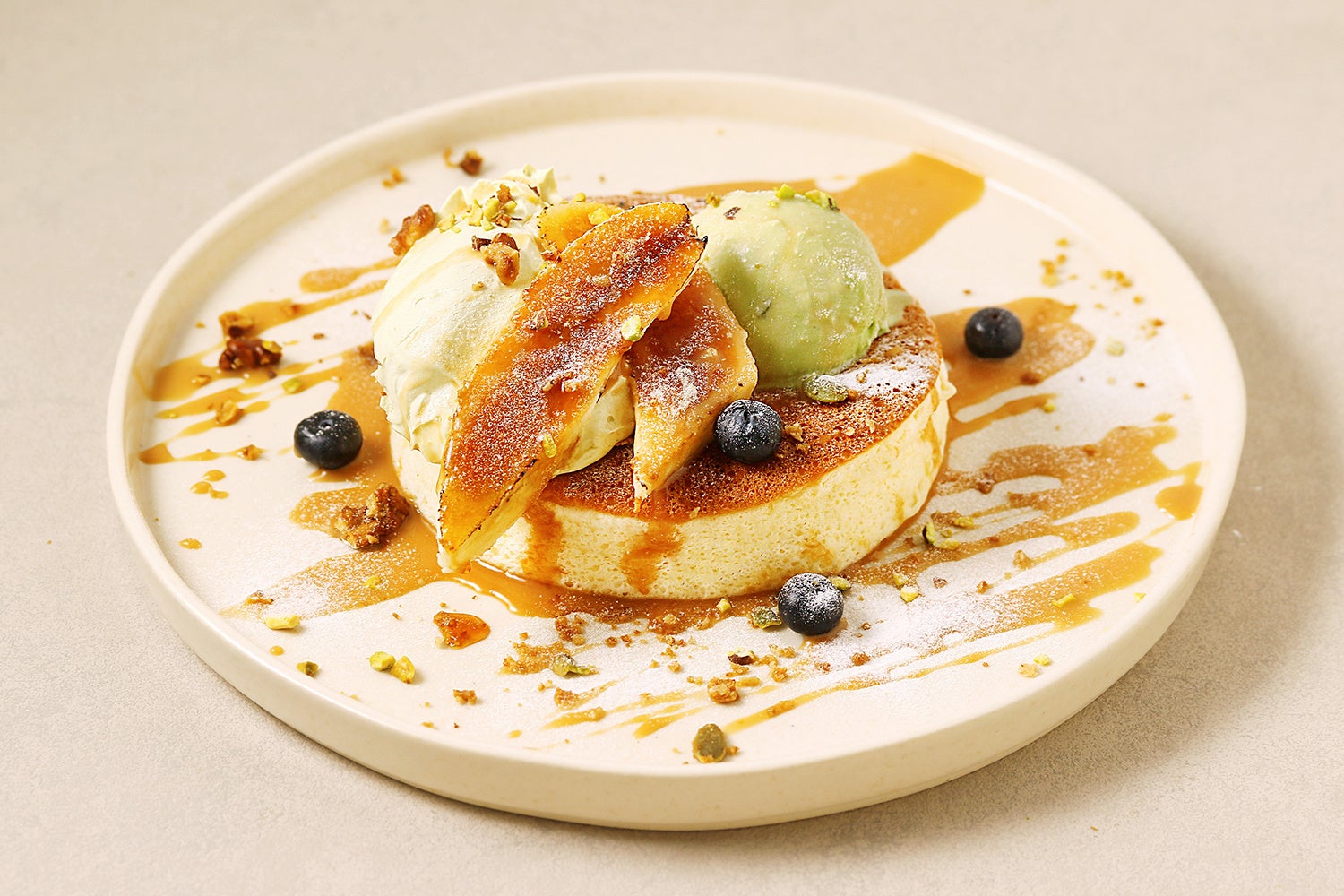 ひと口頬張るとふわっと軽やかな口あたりのデザートパンケーキです。