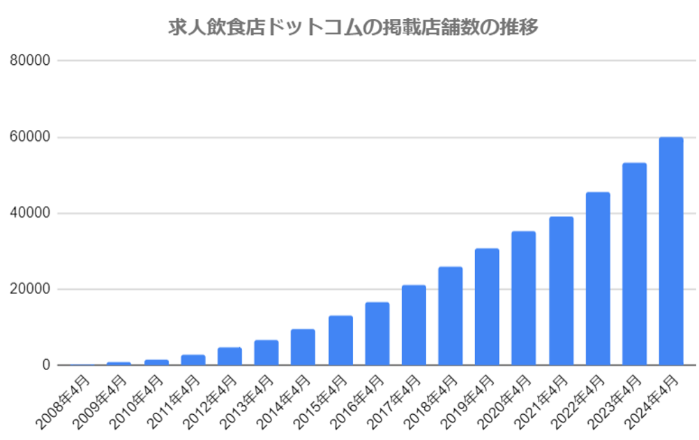 当サイト開設後、掲載店舗数は順調に推移し、2024年4月に店舗掲載数が6万を突破しました。