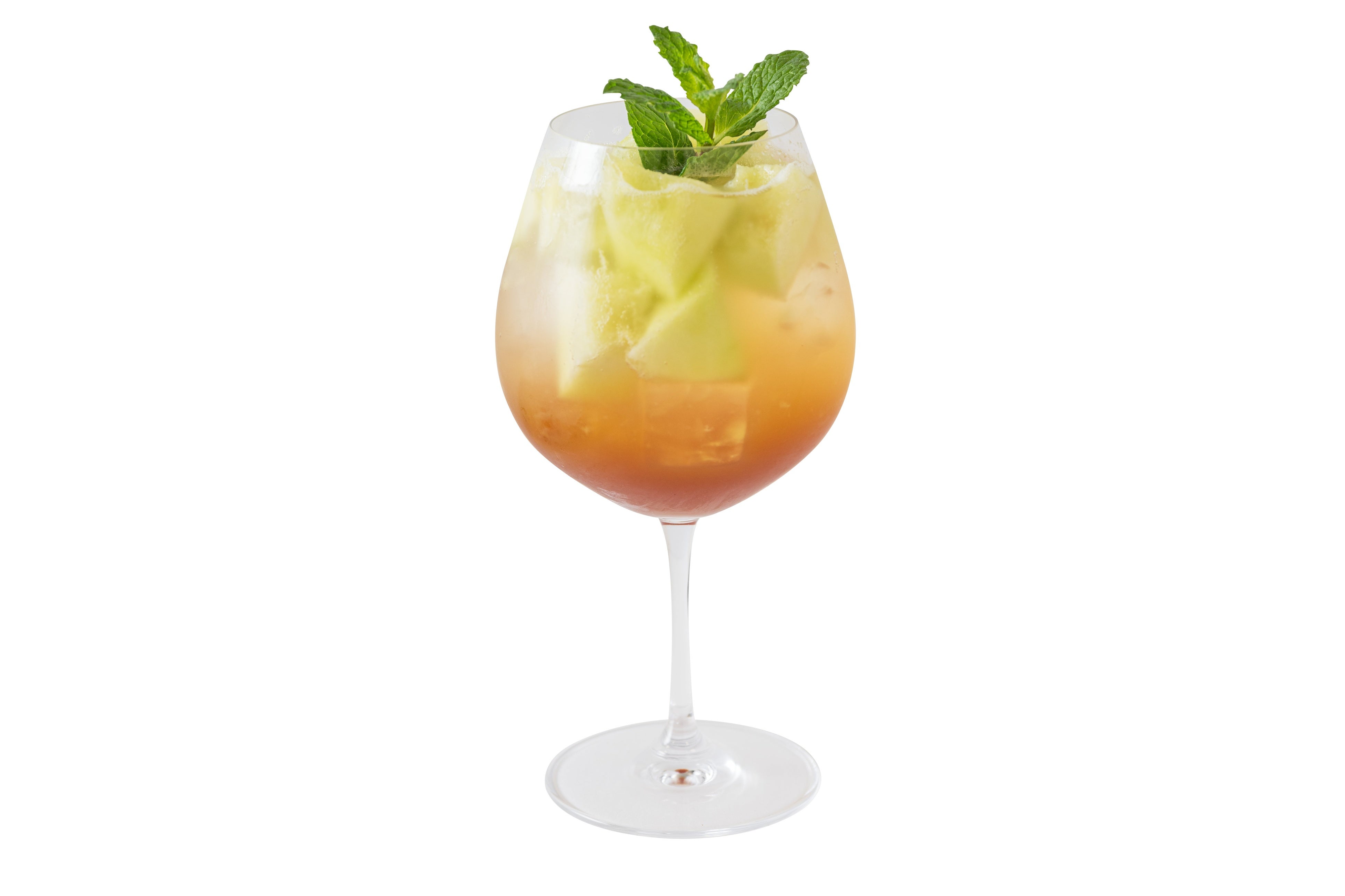 フルーティーなスペインの白ワインに、いばらきメロンを合わせたオリジナルサングリア。