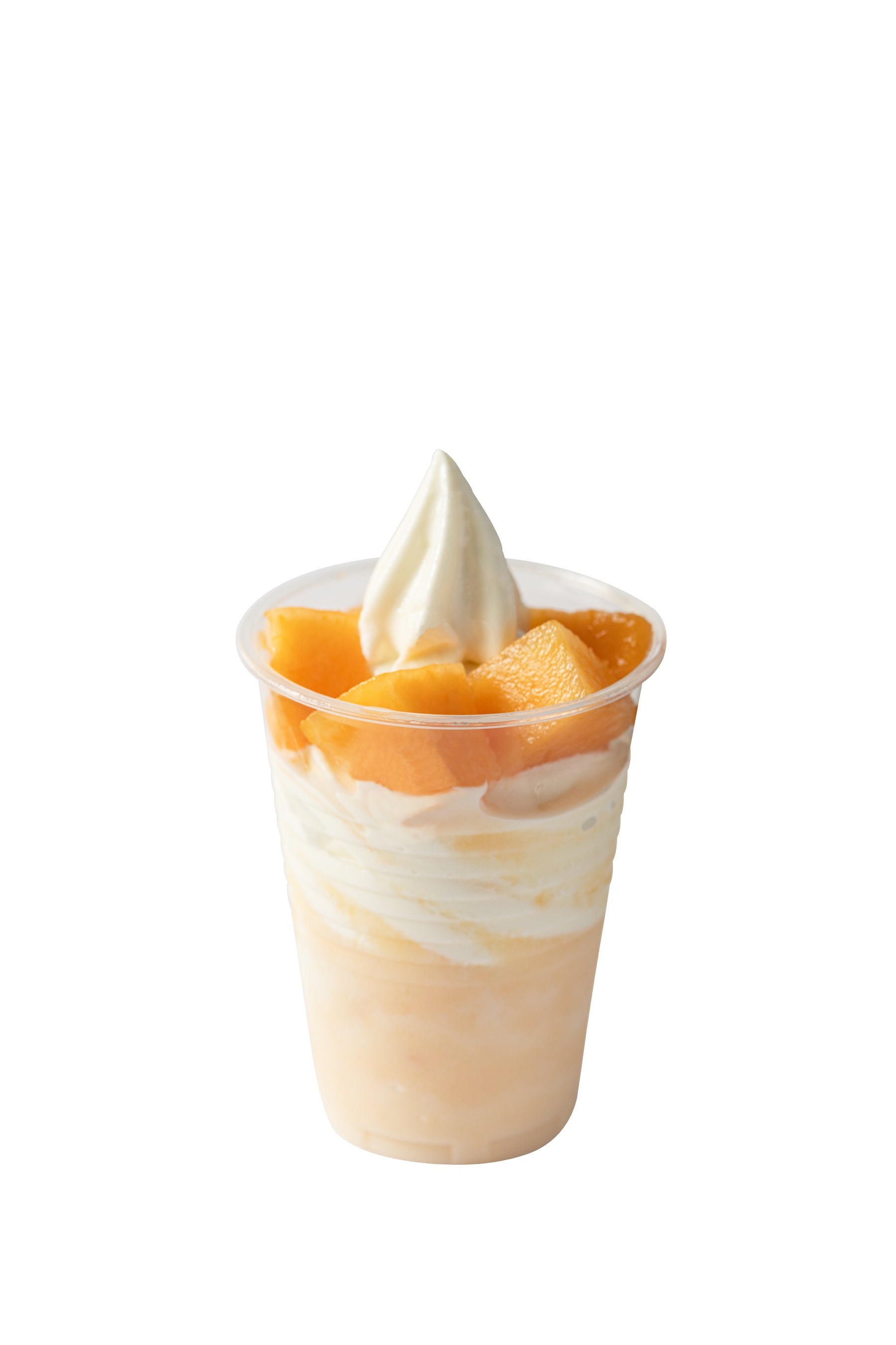 山でのびのびと育った自然放牧牛ミルクに、いばらき産赤肉メロンのピューレをmix。たっぷりのメロン果肉とミルクソフトでおめかし。