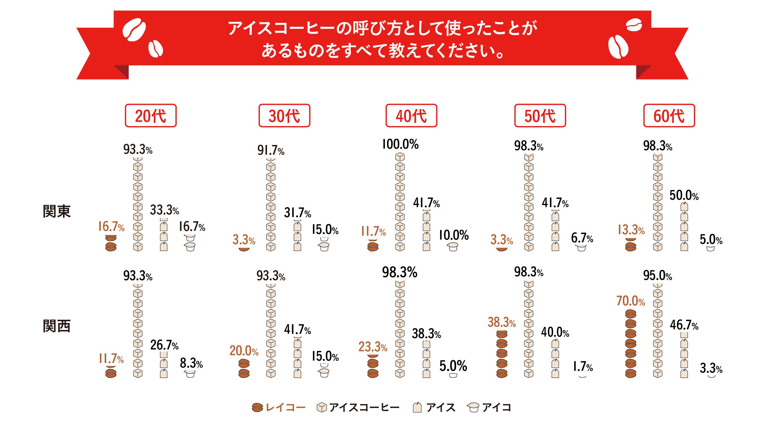 年間を通して「ホットコーヒーよりもアイスコーヒーをよく飲む」人は全体の約4割、20代では過半数がアイス派に!関西圏でも「レイコ―」呼びは絶滅危惧種!?使用者は20代で0%、30代で1.7%のみ