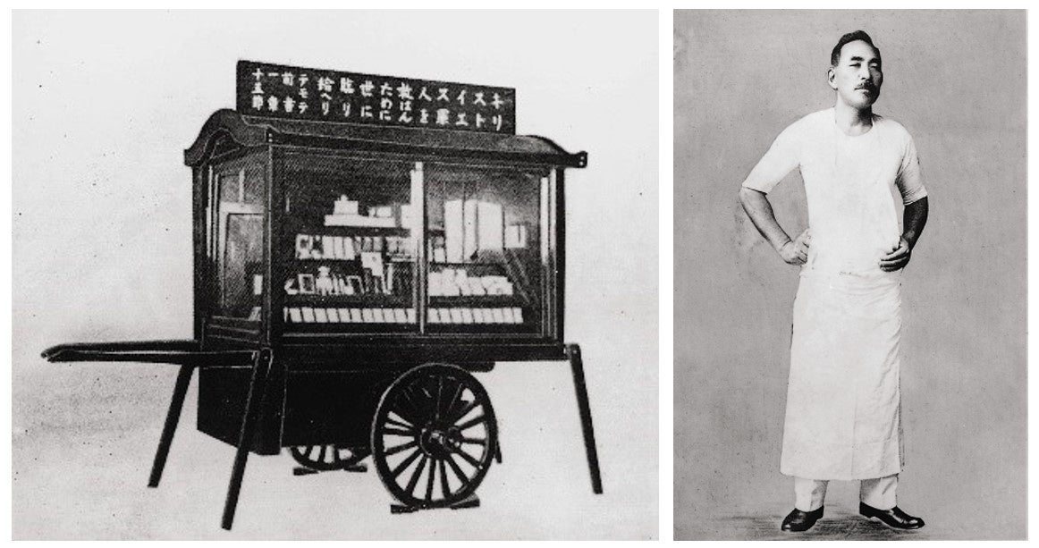(写真左)箱車 (写真右)森永太一郎