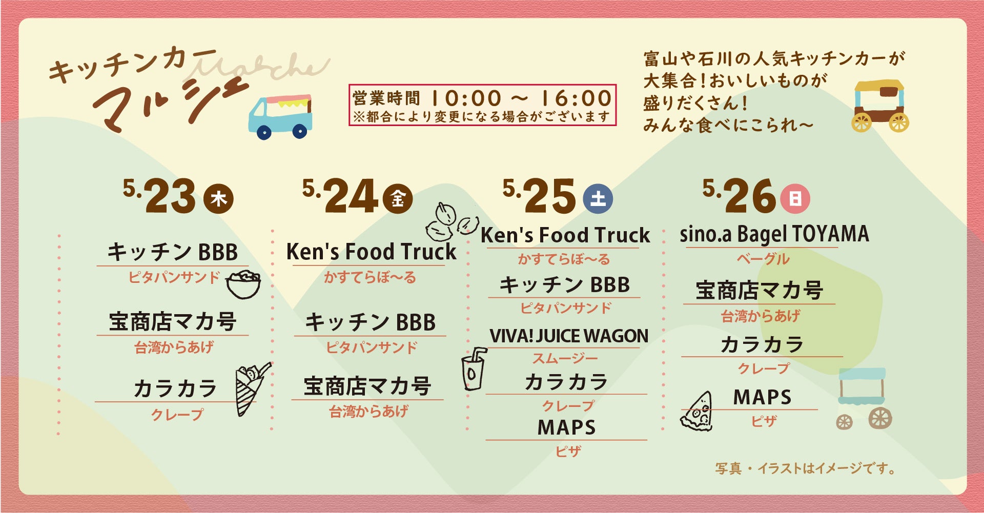 富山や石川の人気店が集まる「キッチンカーマルシェ」は、なんとイベント開催期間の4日間毎日大集合!