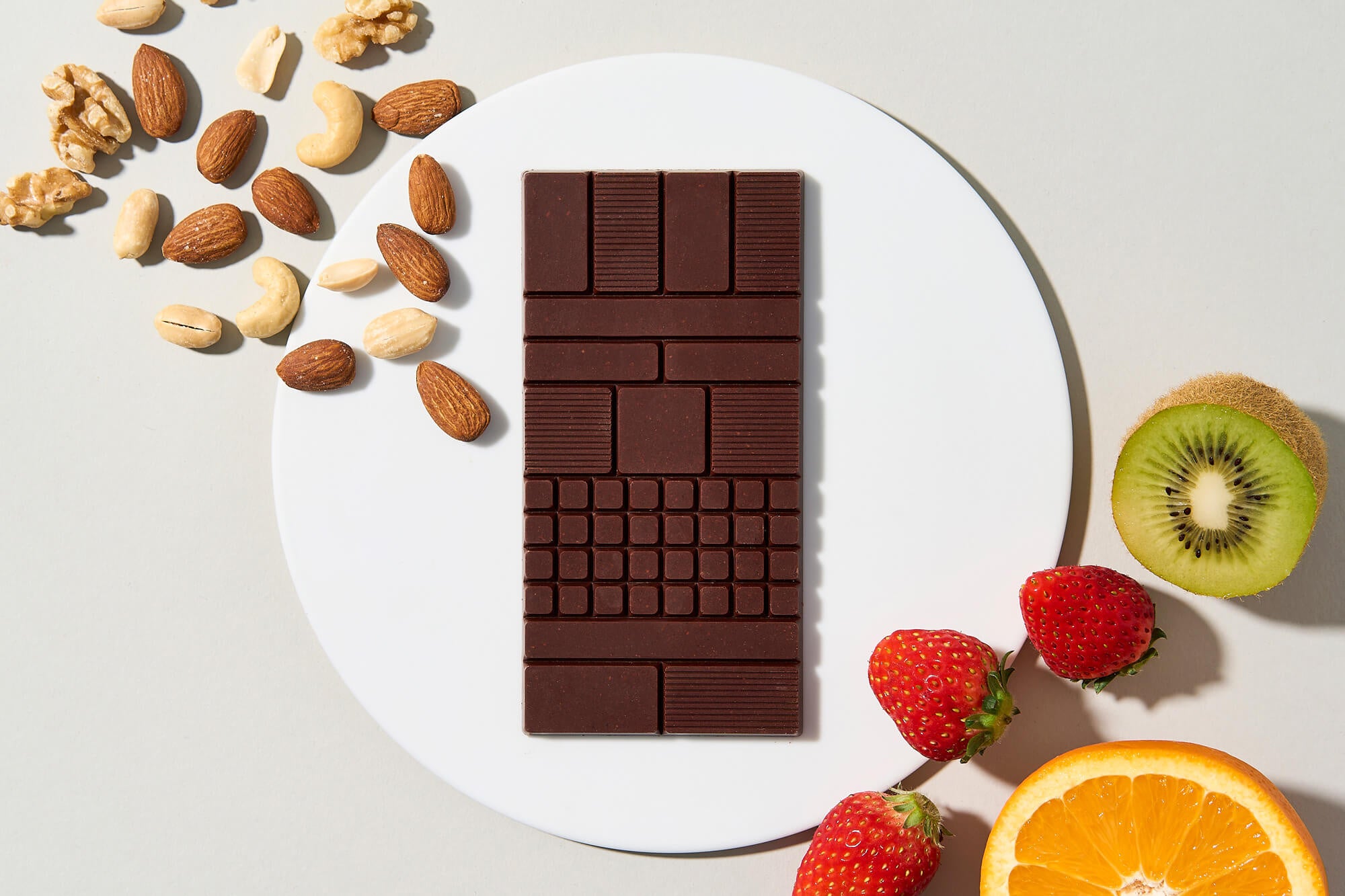 「EXPERIMENTAL #15 」は、ガーナ産カカオ豆を使ったチョコレートと、インド産カカオ豆を使った2種のチョコレートを使い、さらにそれらを1枚で上下に重ねレイヤー状にしています。