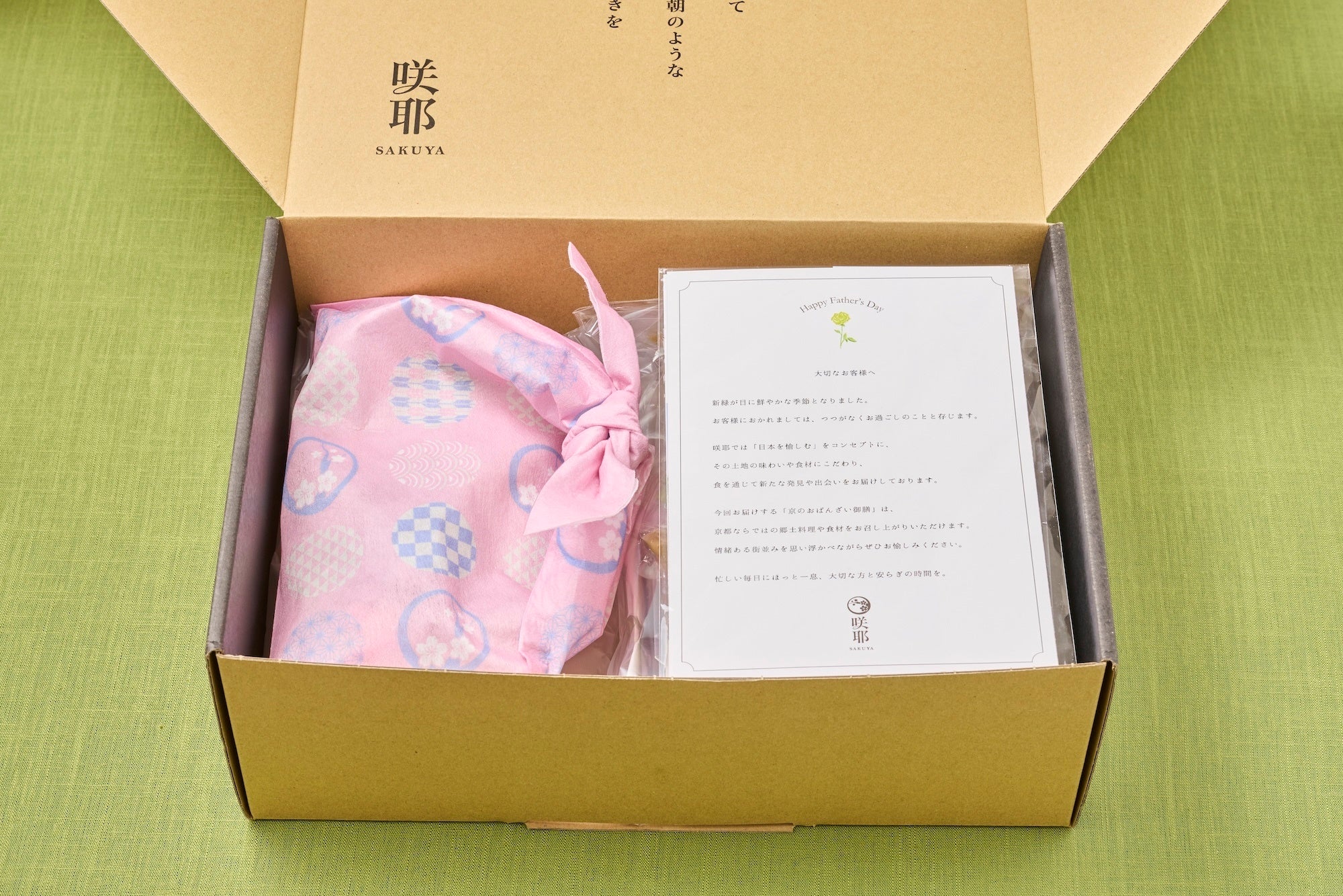 2024年5月23日(木)~6月20日(木)の期間限定で販売する父の日限定キットでは、オリジナルのおしながきや祇園辻利のお茶がセットになっており、いつもより上質なお食事の時間をお楽しみいただけます。