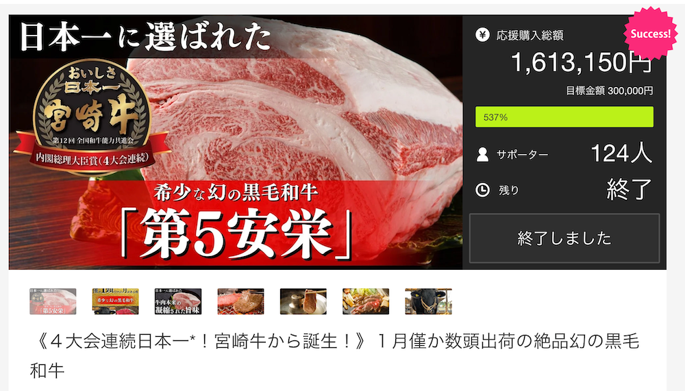 今回のクラウドファンディングを通じて、少しでも多くの方に宮崎牛をはじめ第5安栄の魅力を知ってもらいたい、畜産農家さんたちへの支援を実施していきたいという思いで実行させていただきました。