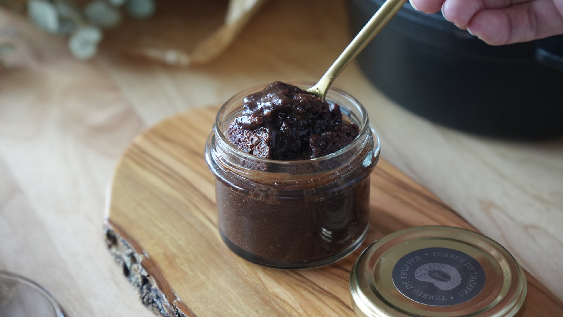 フランス産クーベルチュールと、サマートリュフの香りが贅沢に織りなす、至高のデザート。繊細なカカオの風味とローストの香りが特徴。トリュフの香りが、さらにリッチな味わいを引き立てます。