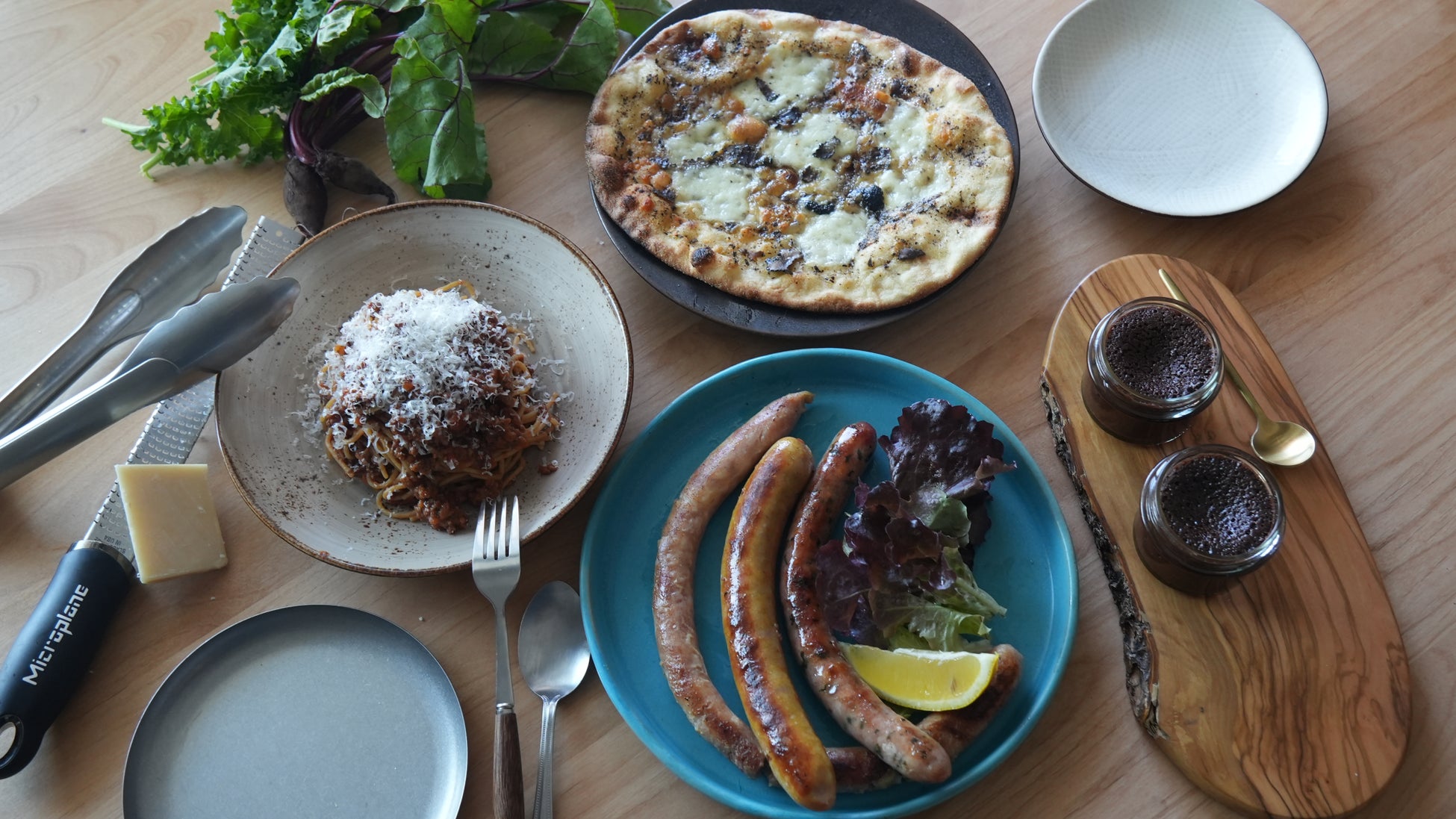 厳選した食材を使用した、ワンランク上のごちそうセットです。こだわりのハンドメイドソーセージ、希少なプレミアム和牛「いわて山形村短角牛」を使用したコクのあるボロネーゼソースのグルテンフリーパスタ、OBICA オンラインショップ人気No.1のトリュフピザ、トリュフのフォンダンショコラをセットにしました。