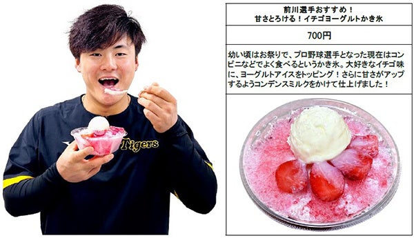 前川選手コメント「初めてのコラボグルメが大好きなイチゴかき氷で嬉しいです!イチゴばかりではなく、ヨーグルトアイスやコンデンスミルクでバランスよく仕上げました!お子様から大人の方まで、たくさんの方に食べてほしいです!」