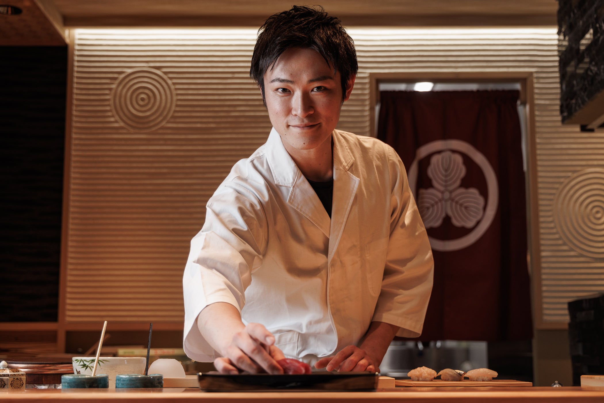 大将を勤める橋本は、10代から和食業界に入り、京都・宇治で100年以上続く老舗料亭で修業した後、鮨屋へ転向。東京・銀座の会員制 鮨割烹では料理長を務め、この度、29歳の若さで自身のお店を両国にオープンしました。橋本がこれまでに銀座で培ってきた料理の味とサービスを、より身近に、より多くのお客様に体験していただきたいという想いから、江戸前寿司発祥の地でもある両国に店を構え、リーズナブルな価格で料理を提供します。