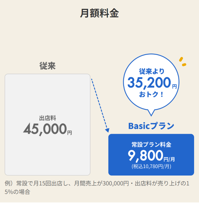 ※月額料金とは別途、出店場所への支払いが発生する場合があります