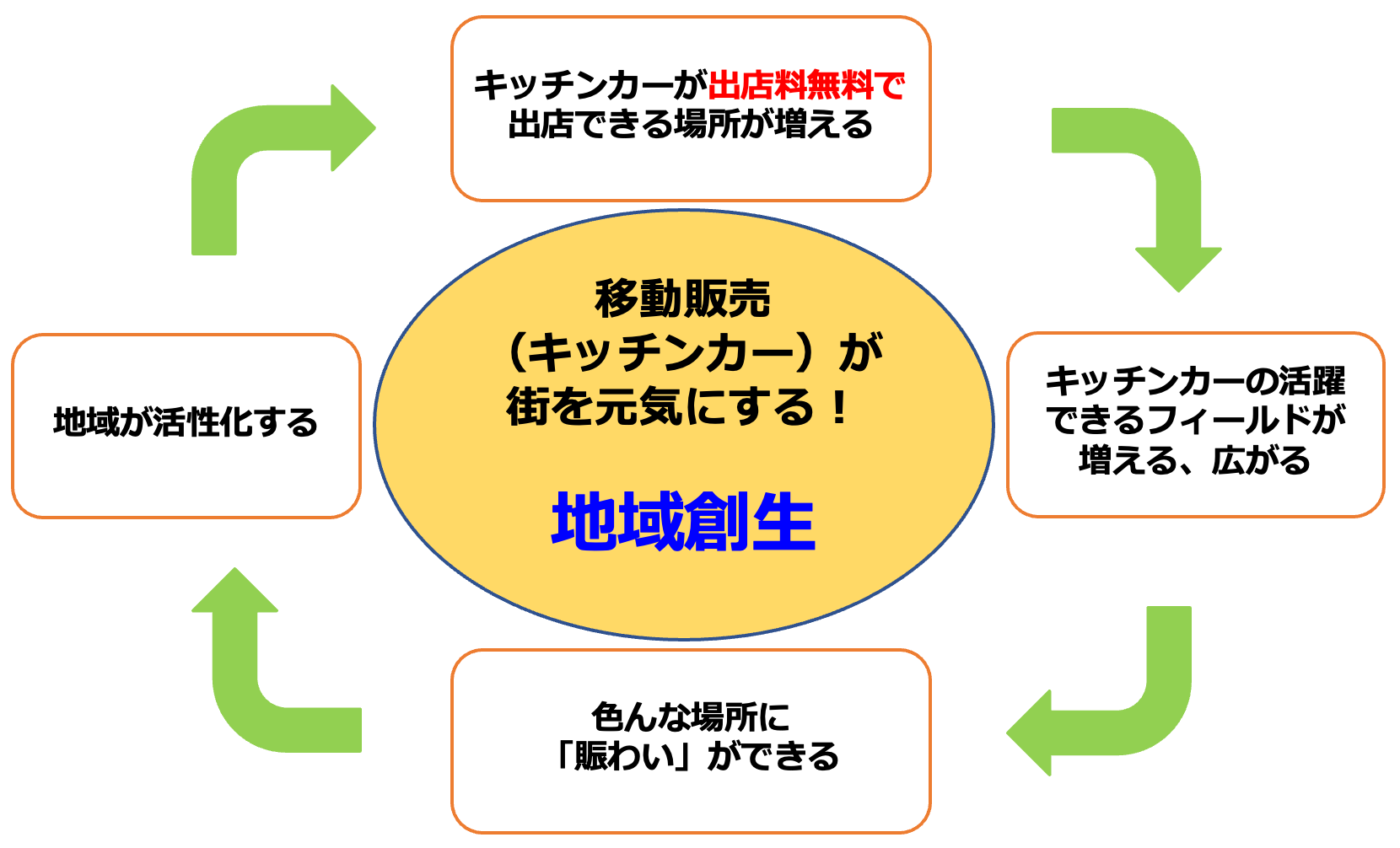 より多くの場所で、キッチンカー(移動販売)事業者とともに街を元気にしたい。