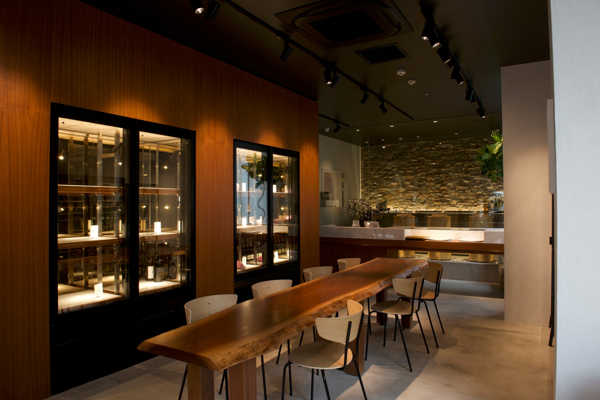 ショーケースでライトアップされた精肉やガラス張りの厨房など、開放感がありながらも高級感のある店内を意識したデザインを取り入れています。ランチ時にはテラス席をご用意し、そこではペットを連れてお食事いただけるようにリードフックの備えもございます。どなたにもお楽しみいただける空間となっております。