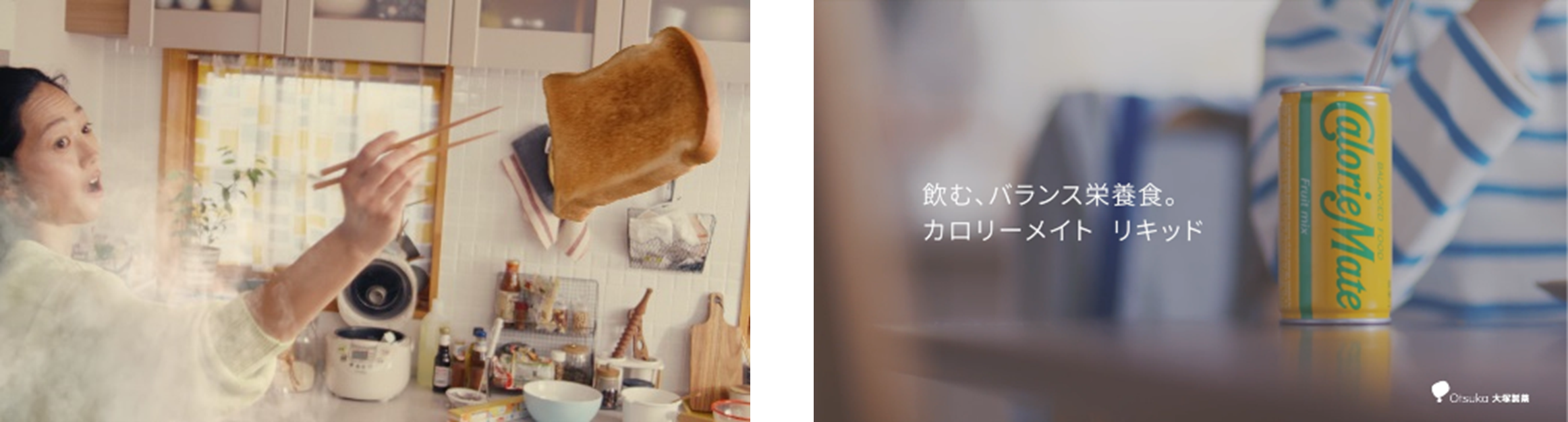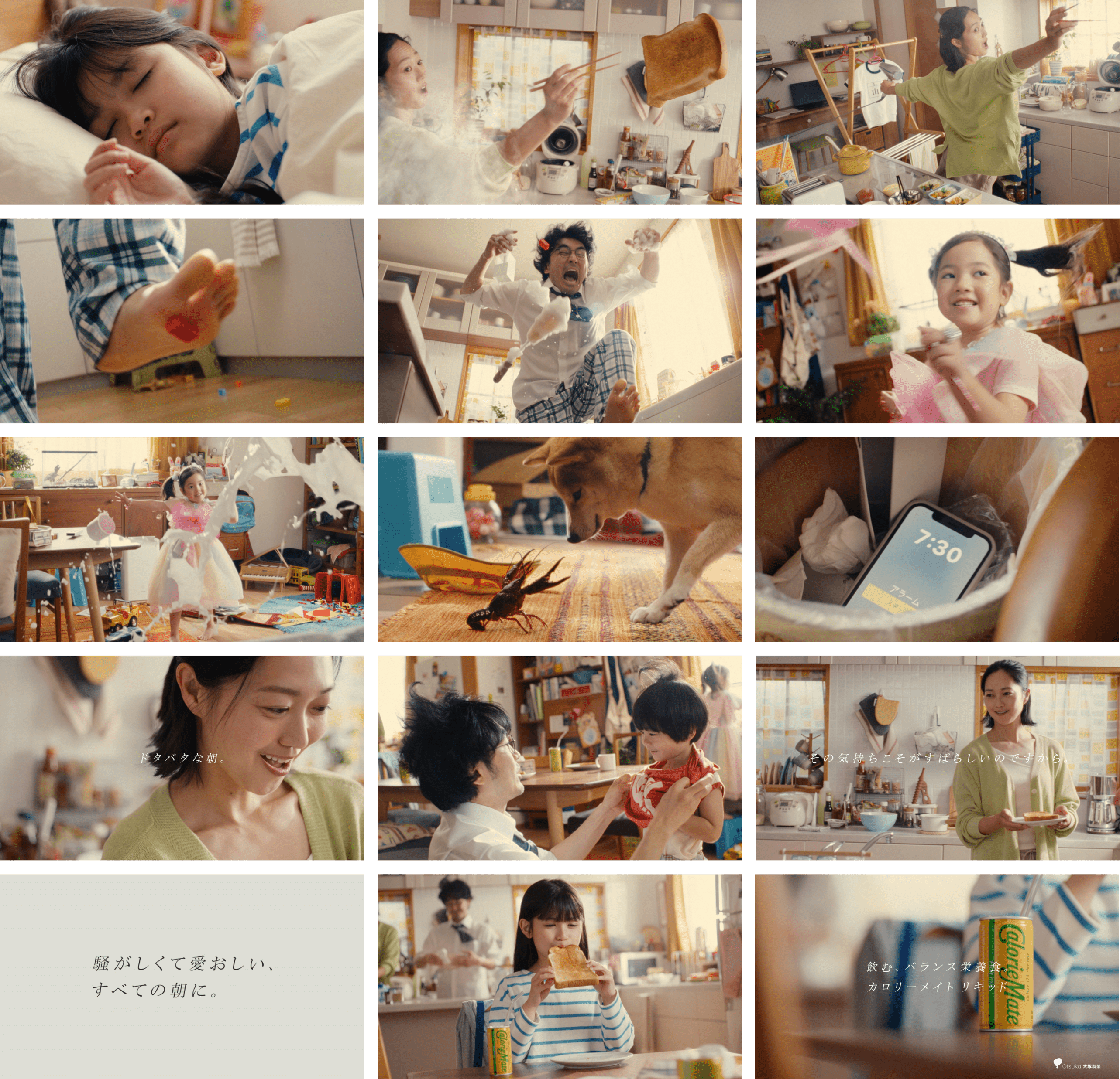 本WEBCMは、忙しい朝でも手軽に5大栄養素をバランスよく補えるカロリーメイトリキッドが騒がしくても大切な人の栄養を想う、どこか愛おしい朝に寄り添うために制作いたしました。
