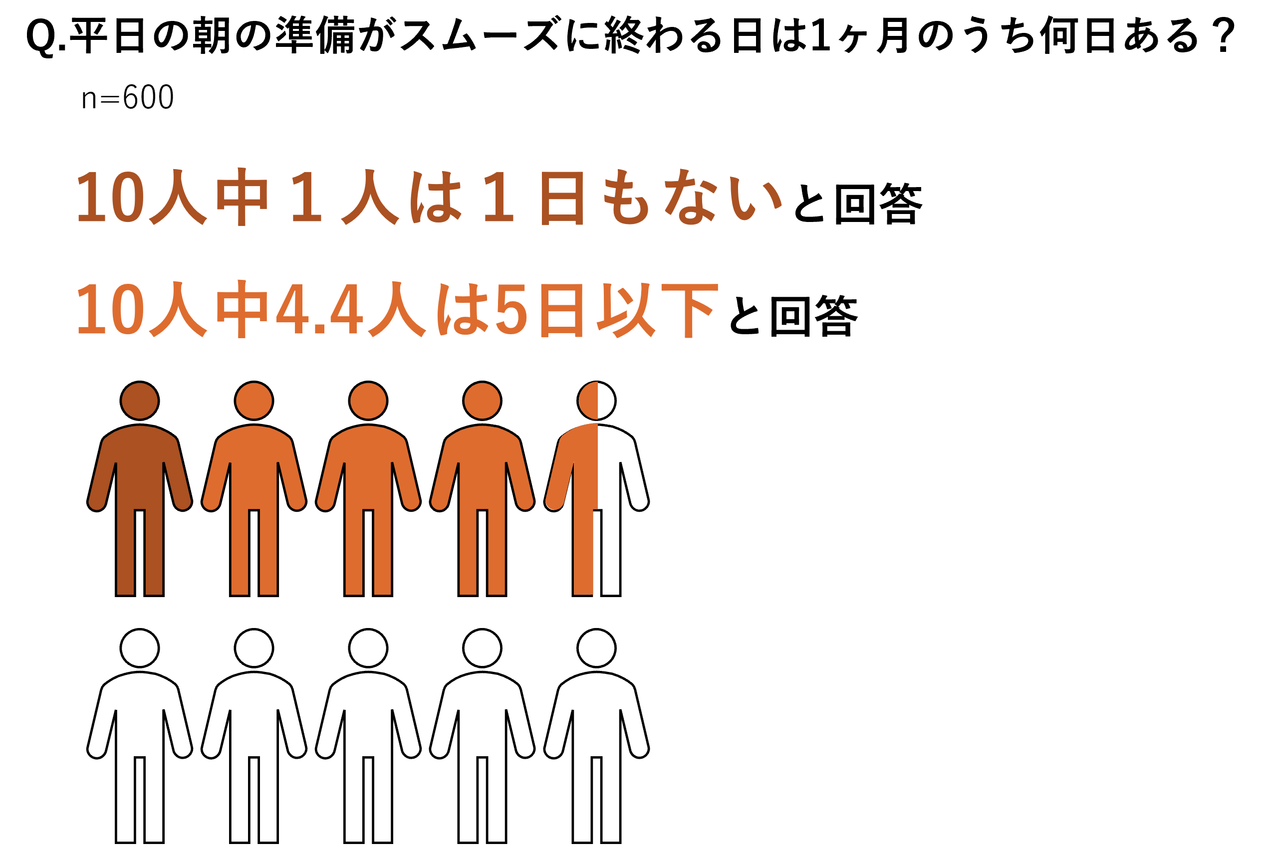 ■平日に朝の支度が順調に終わるのは月に平均9.6日、1ヶ月の約半分ということが明らかに