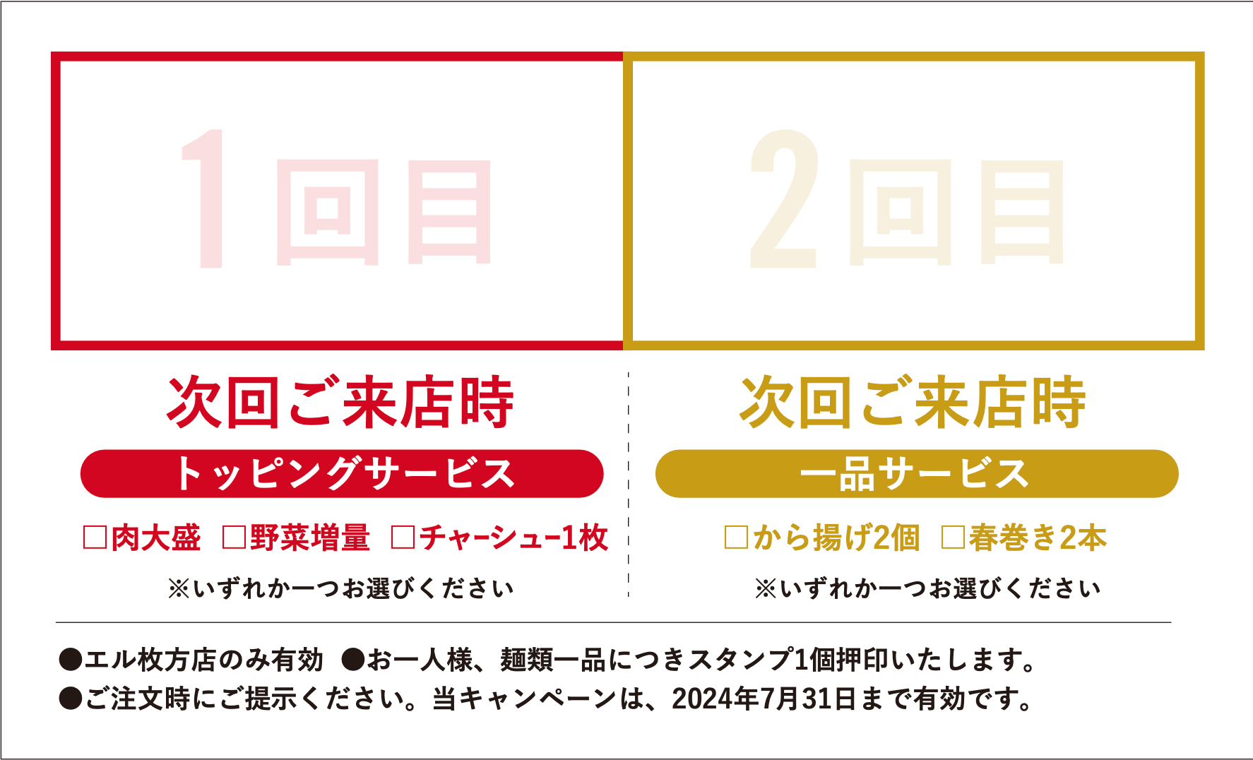 ・お一人様、麺類一品につきスタンプ1個押印