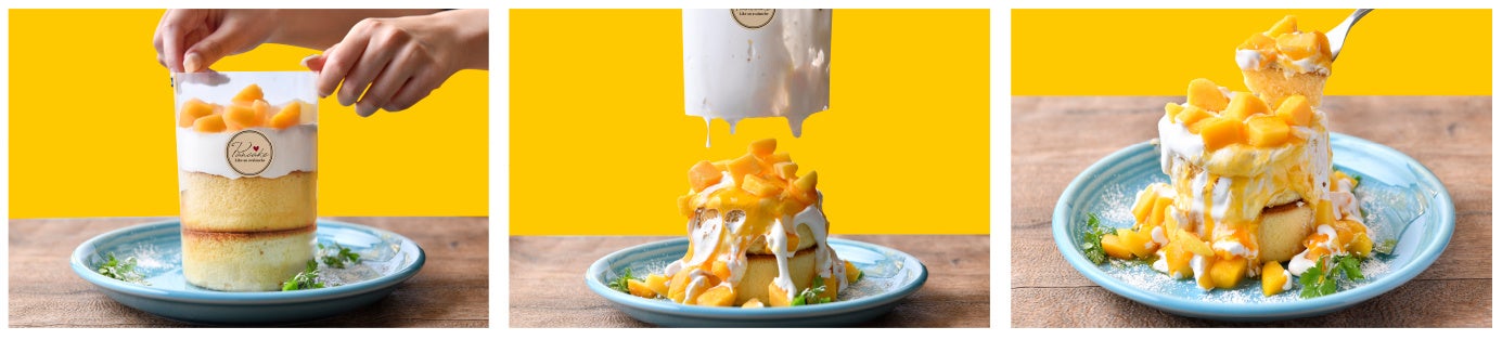 見て楽しい!食べておいしい!大好評をいただいた「雪崩れパンケーキ」に、夏の味覚”完熟マンゴー”をふんだんに使用した『雪崩まくるマンゴーパンケーキ』が新登場!