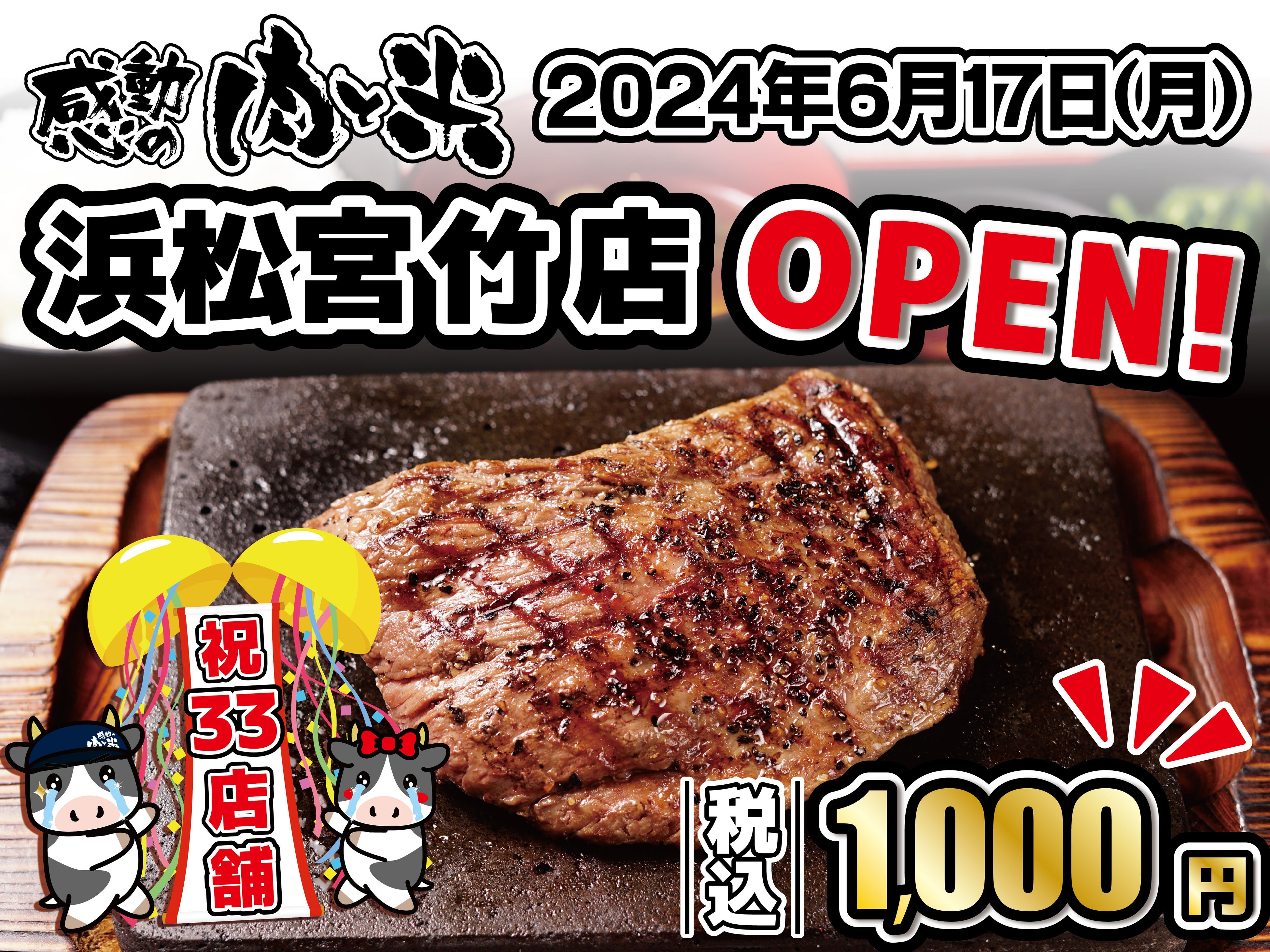 6月17日(月)11:00~『感動の肉と米 浜松宮竹店』がopenします!
