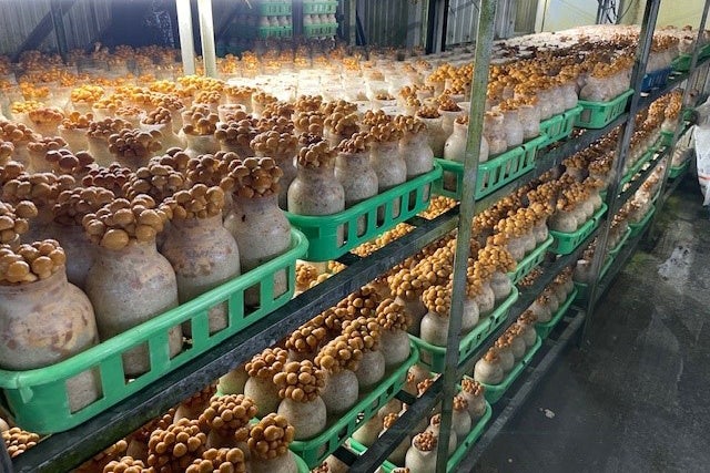 なめこ栽培発祥の地とされる福島県で、育てられているジャンボなめこ。なめこは菌の性質が変わりやすく管理が難しいきのことのこと。室温16度、湿度100%近くの管理下で約90~120日間の長期培養にこだわって栽培される.