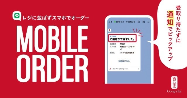 ゴンチャでは、モバイルオーダーで事前にご注文&お支払いをしていただくことで、レジに並ばずにお店に着いたらすぐに商品をお受取りいただくことが可能です。また、商品完成後のLINE通知ですぐに商品を受取ることができるため、並ぶ時間やお待ちいただく時間を有効活用いただけます。ゴンチャは、おしゃべり歓迎のグローバルティーカフェ。ぜひこの機会に、モバイルオーダーをご利用いただき、ティーを通じたかけがえのない時間を大切な方とお楽しみください。