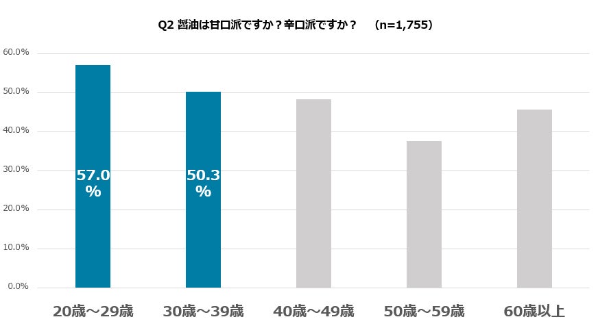 ◇20代の甘口派は57.0%、30代は50.3%。他の年代より高い傾向が判明。