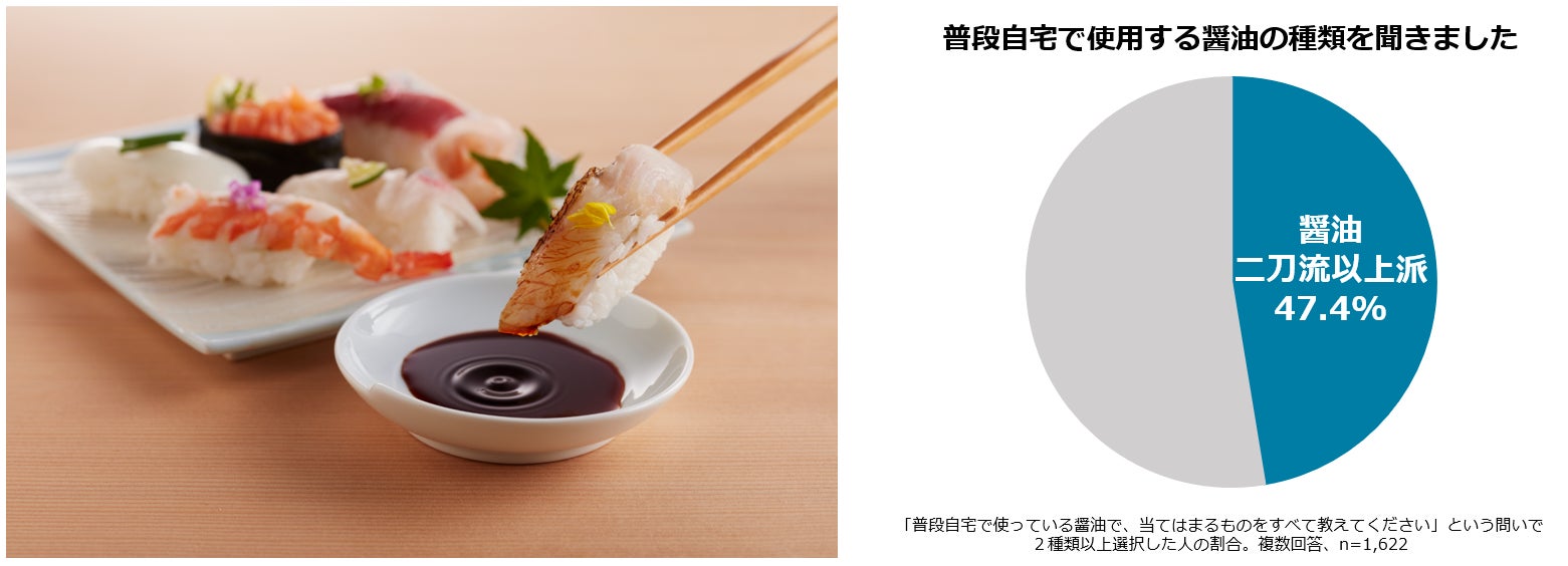 ◇普段自宅で使っている醤油で当てはまるものを2つ以上選択した「醤油二刀流以上派」は、47.4%と高めの結果となった。